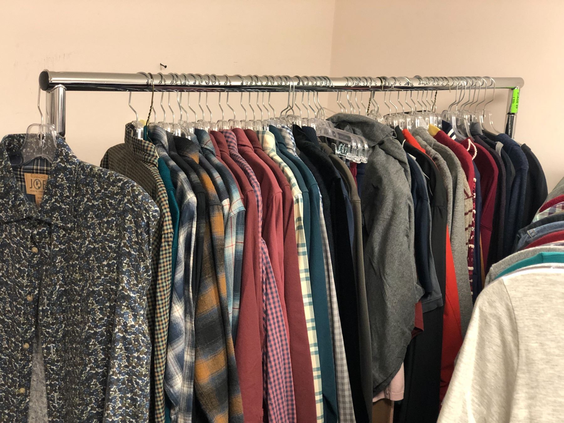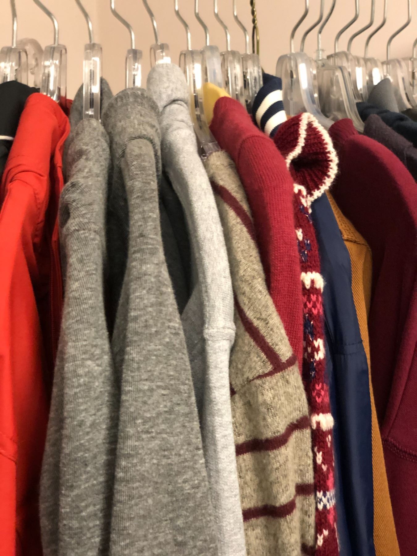 Full rack of mis. Clothes - includes shirts/sweaters/etc. (approx. 50p., various adult sizes)