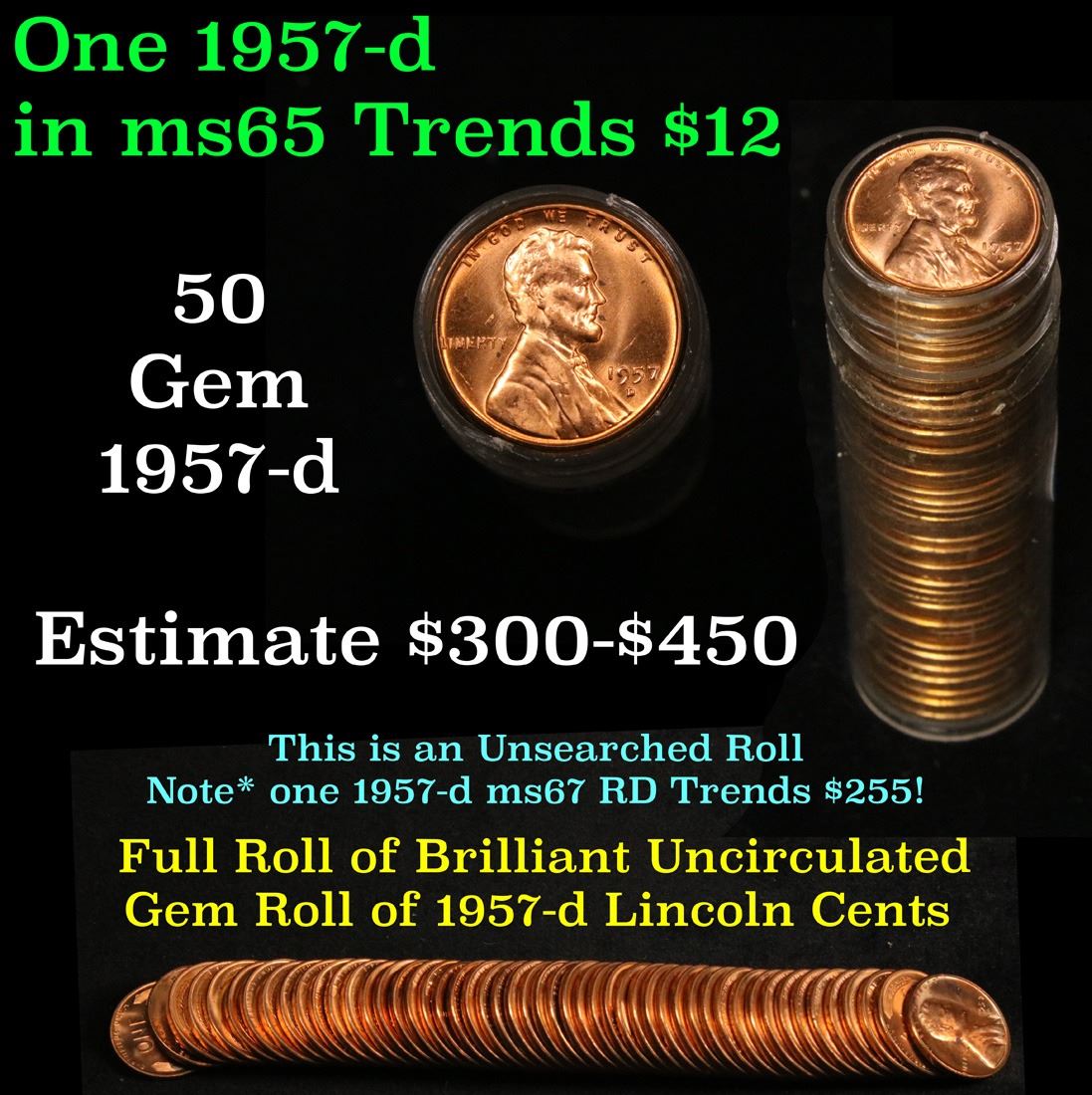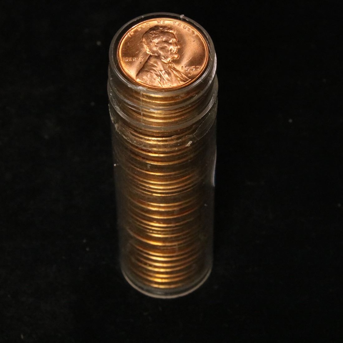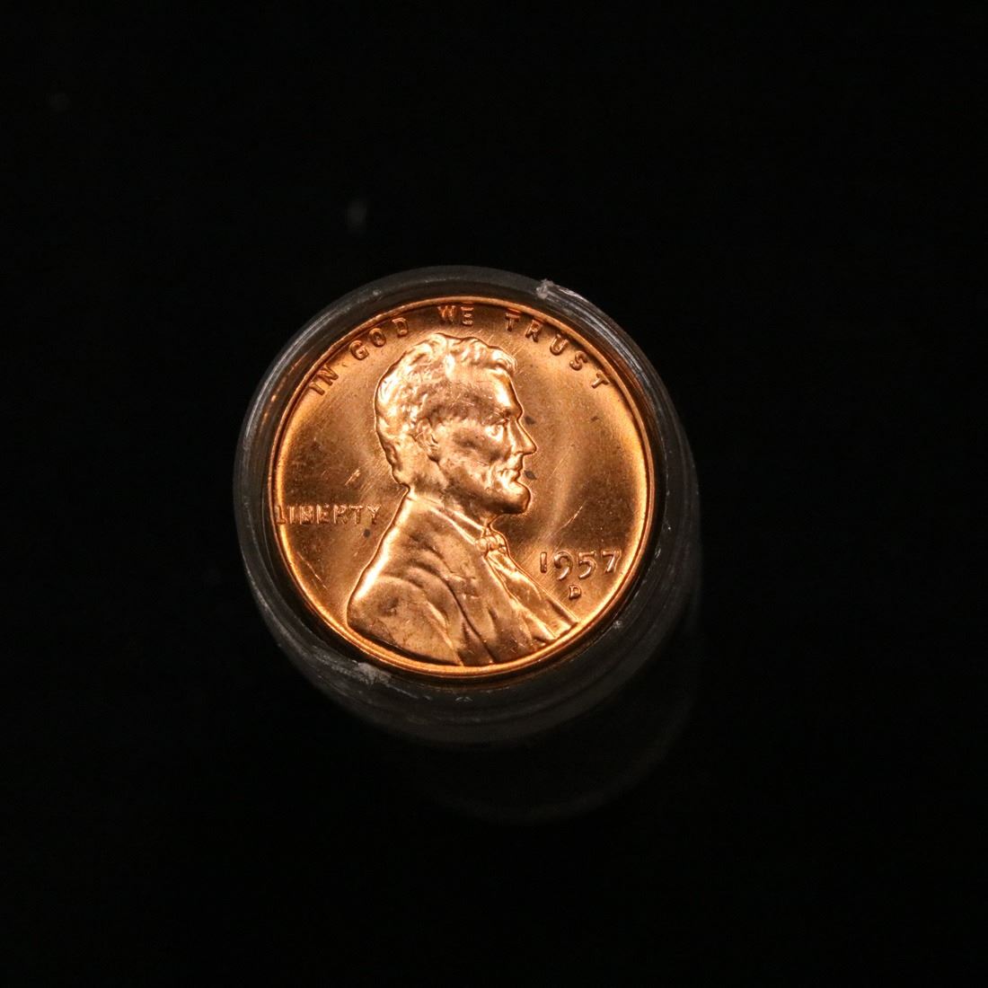Full roll of 1957-d Lincoln Cents 1c Uncirculated Condition . .. A real find. A great roll of brilliant uncirculated red lincoln cents. All 1957-d. Trends lists ms64rd at $9/each $360