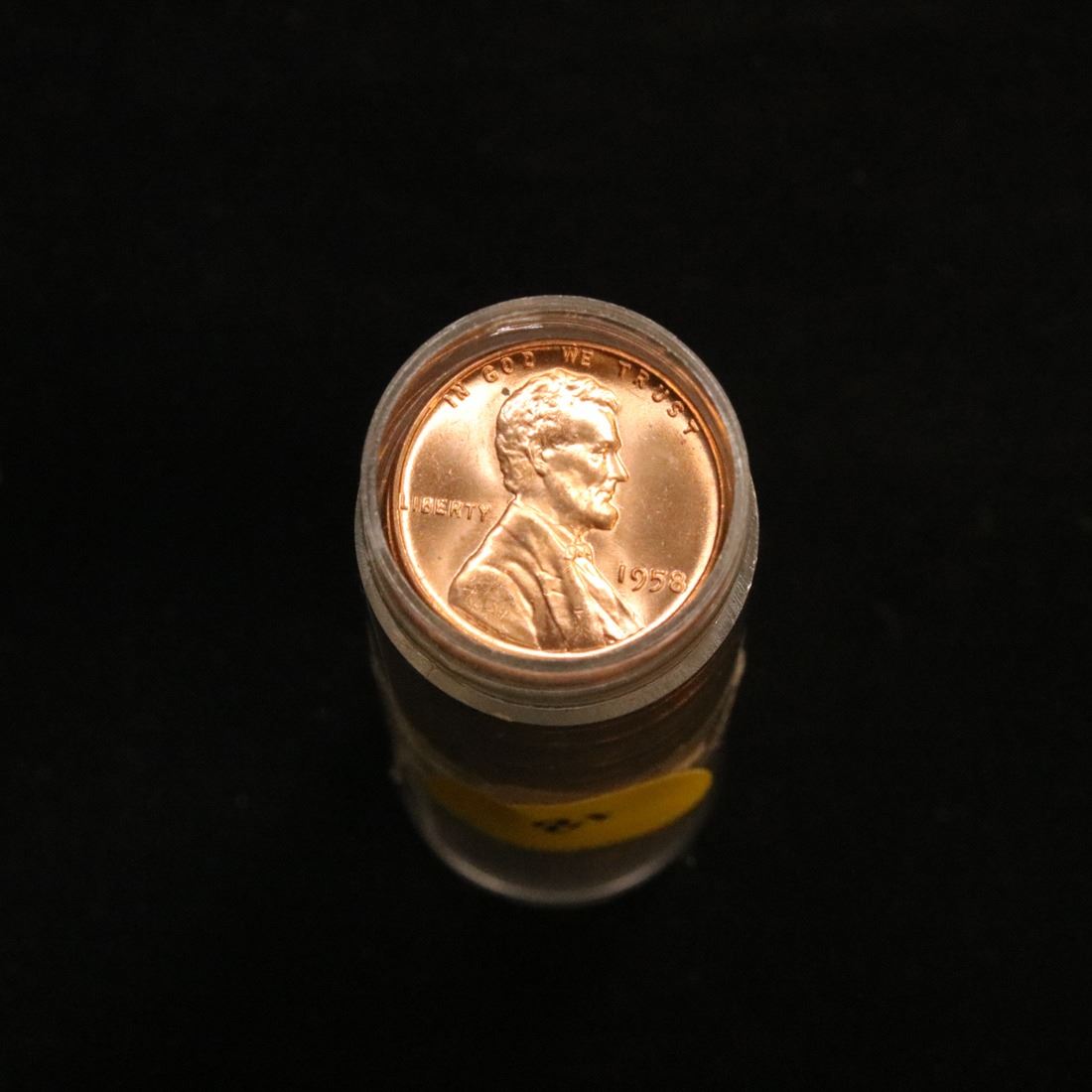Full roll of 1958-p Lincoln Cents 1c Uncirculated Condition . .. A real find. A great roll of brilliant uncirculated red lincoln cents. All 1958-p. Trends lists ms64rd at $10/each, $400