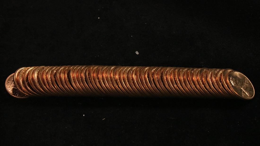 Full roll of 1959-d Lincoln Cents 1c Uncirculated Condition . .. A real find. A great roll of brilliant uncirculated red lincoln cents. All 1959-d. Trends lists ms64rd at $10/each, $400