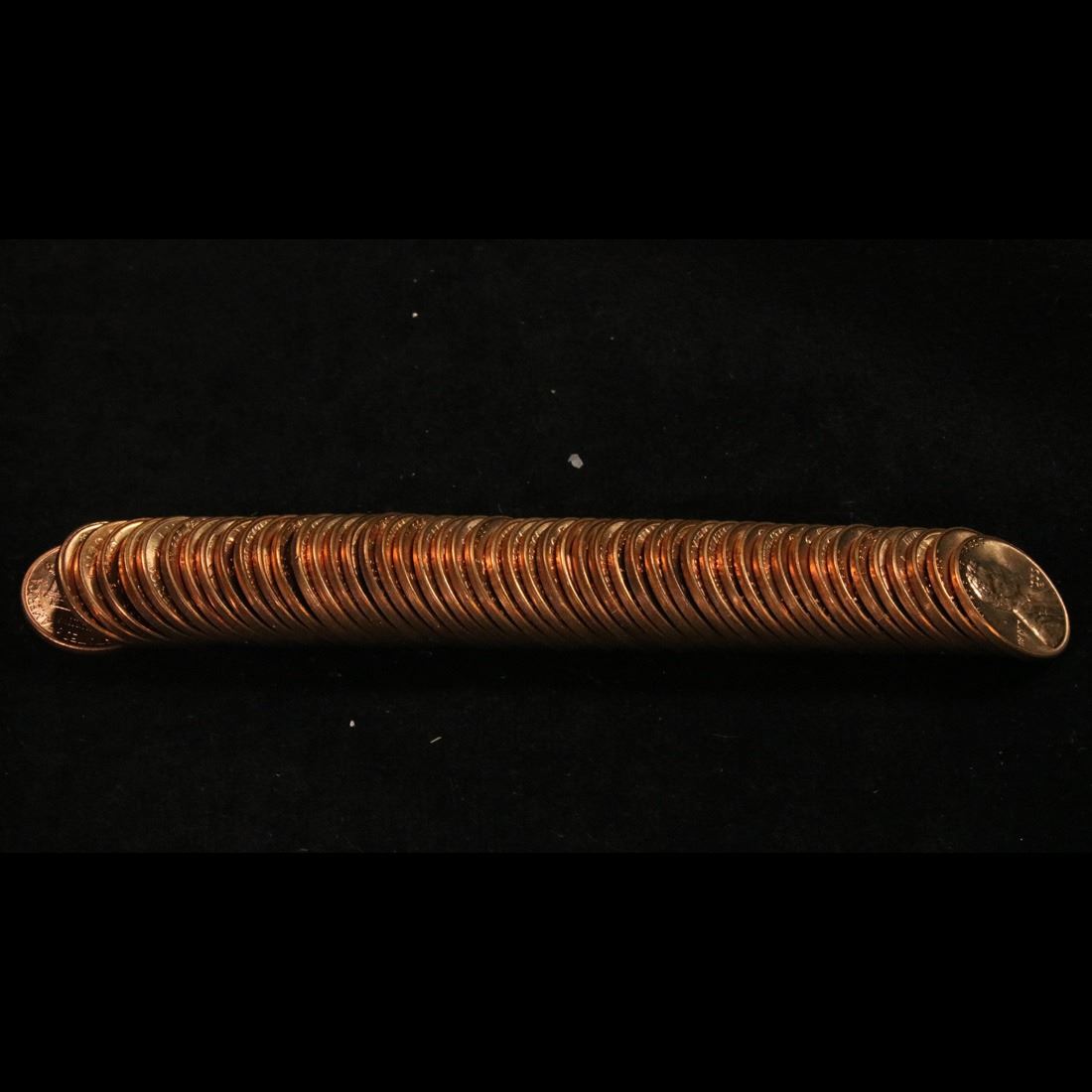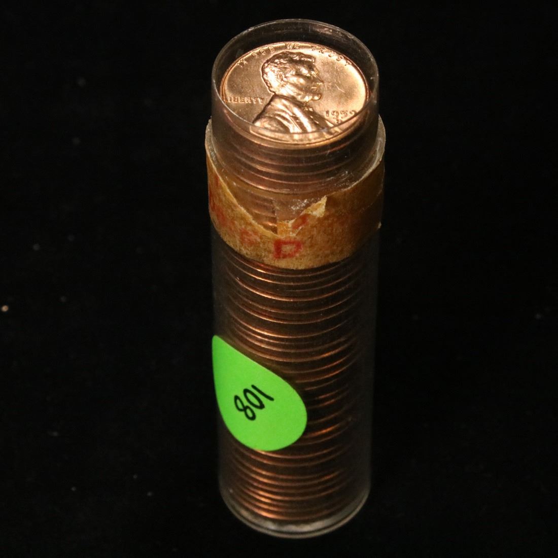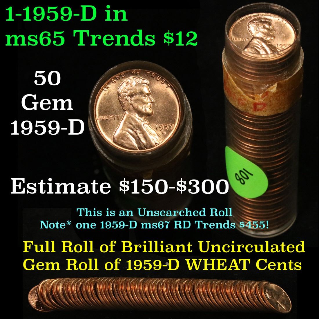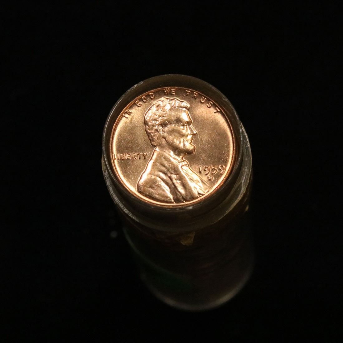 Full roll of 1959-d Lincoln Cents 1c Uncirculated Condition . .. A real find. A great roll of brilliant uncirculated red lincoln cents. All 1959-d. Trends lists ms64rd at $10/each, $400