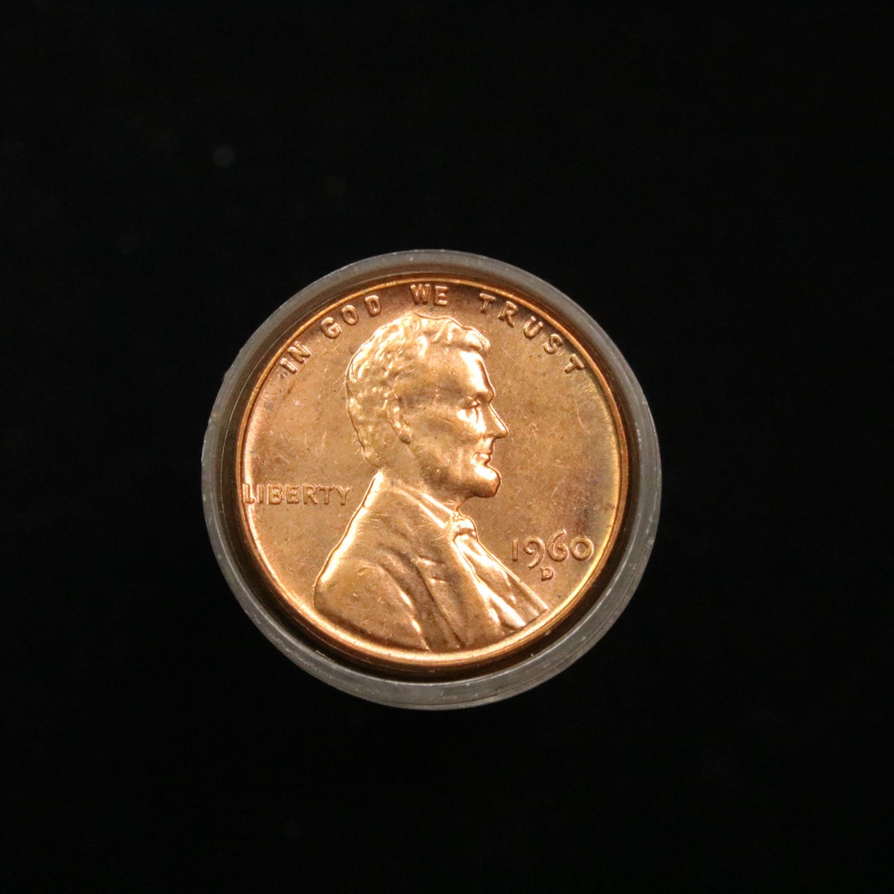 Full roll of 1960-d Lincoln Cents 1c Uncirculated Condition . .. A real find. A great roll of brilliant uncirculated red lincoln cents. All 1960-d. Trends lists ms64rd at $15/each, $600