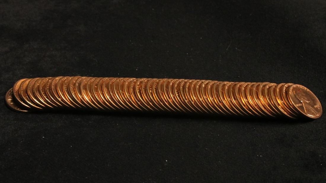 Full roll of 1961-d Lincoln Cents 1c Uncirculated Condition . .. A real find. A great roll of brilliant uncirculated red lincoln cents. All 1961-d. Trends lists ms64rd at $10/each, $400