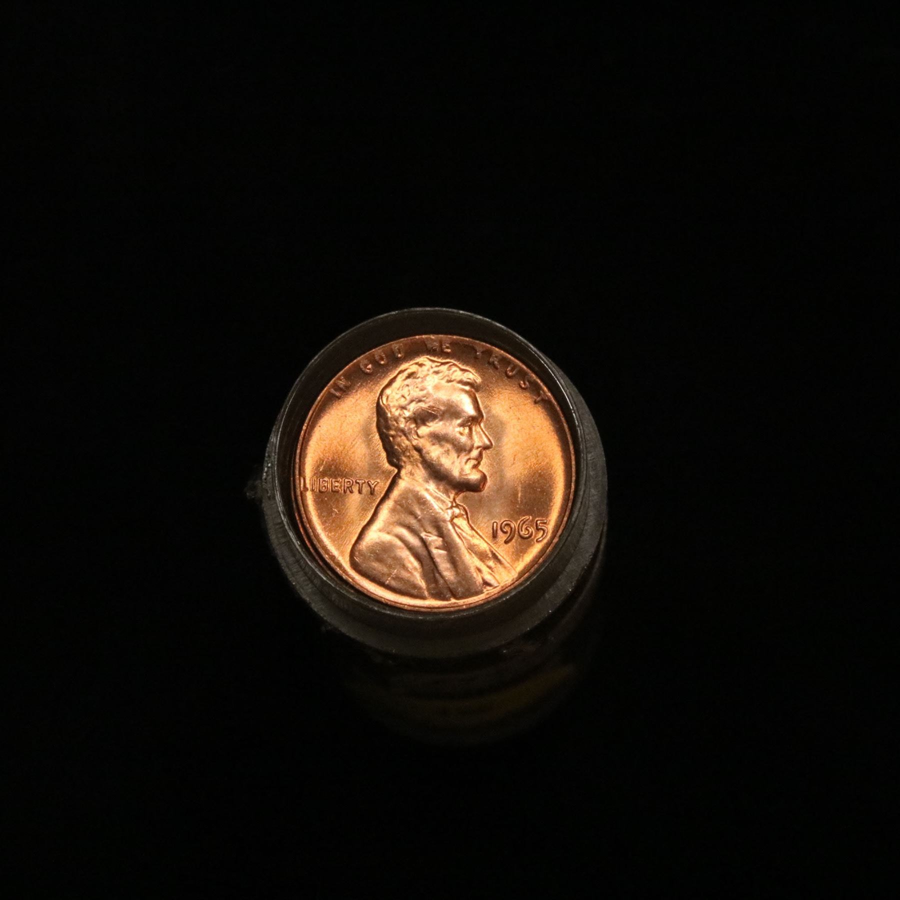 Full roll of 1965-p Lincoln Cents 1c Uncirculated Condition . .. A real find. A great roll of brilliant uncirculated red lincoln cents. All 1965-p. Trends lists ms64rd at $7.50, $300
