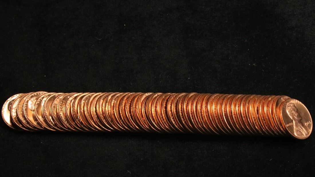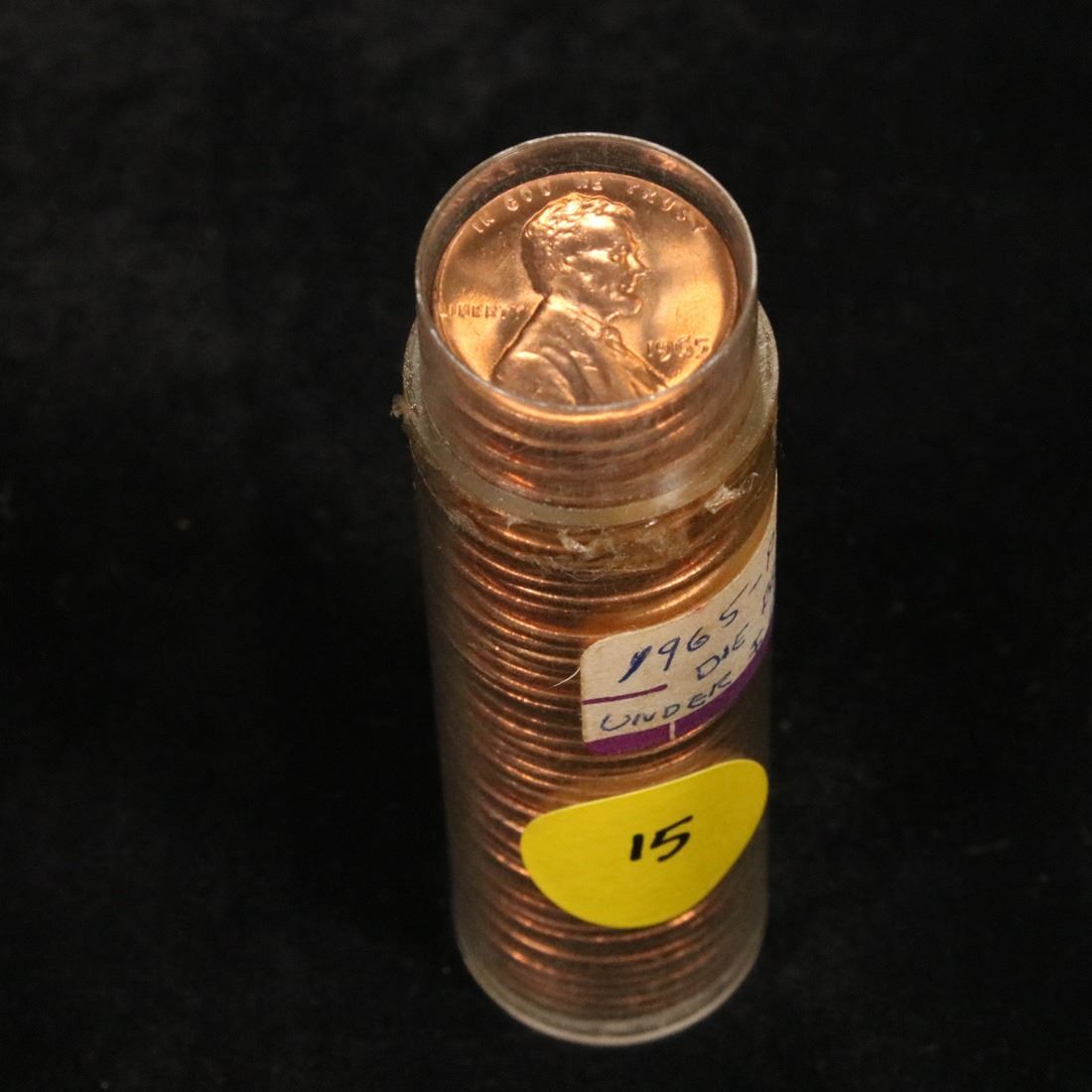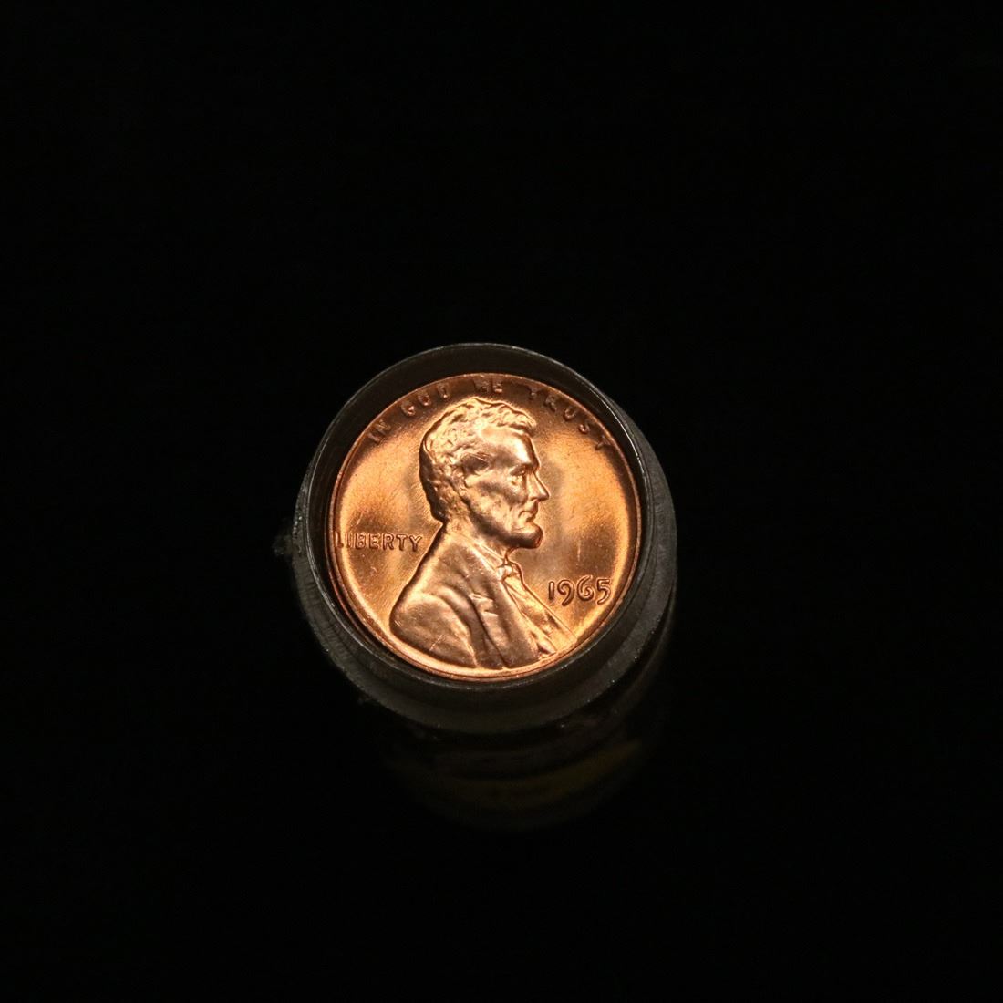 Full roll of 1965-p Lincoln Cents 1c Uncirculated Condition . .. A real find. A great roll of brilliant uncirculated red lincoln cents. All 1965-p. Trends lists ms64rd at $7.50/each, $300
