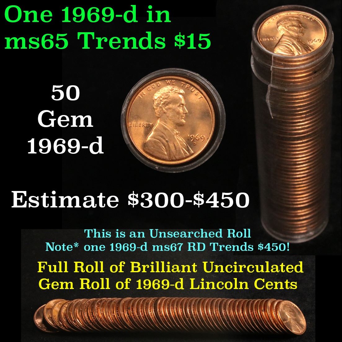 Full roll of 1969-d Lincoln Cents 1c Uncirculated Condition . .. A real find. A great roll of brilliant uncirculated red lincoln cents. All 1969-d. Trends lists ms64rd at $10/each, $400