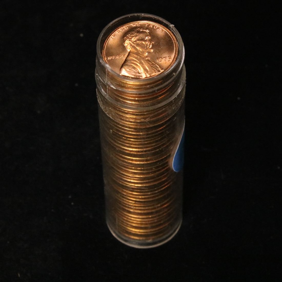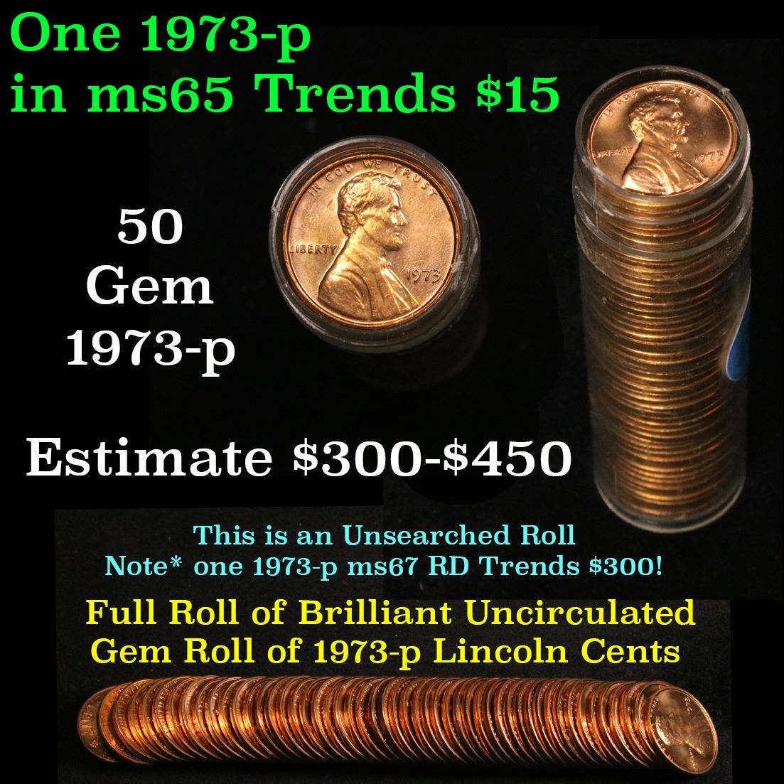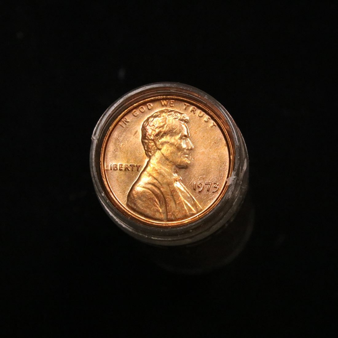 Full roll of 1973-p Lincoln Cents 1c Uncirculated Condition . .. A real find. A great roll of brilliant uncirculated red lincoln cents. All 1973-p. Trends lists ms64rd at $10.00/each, $300