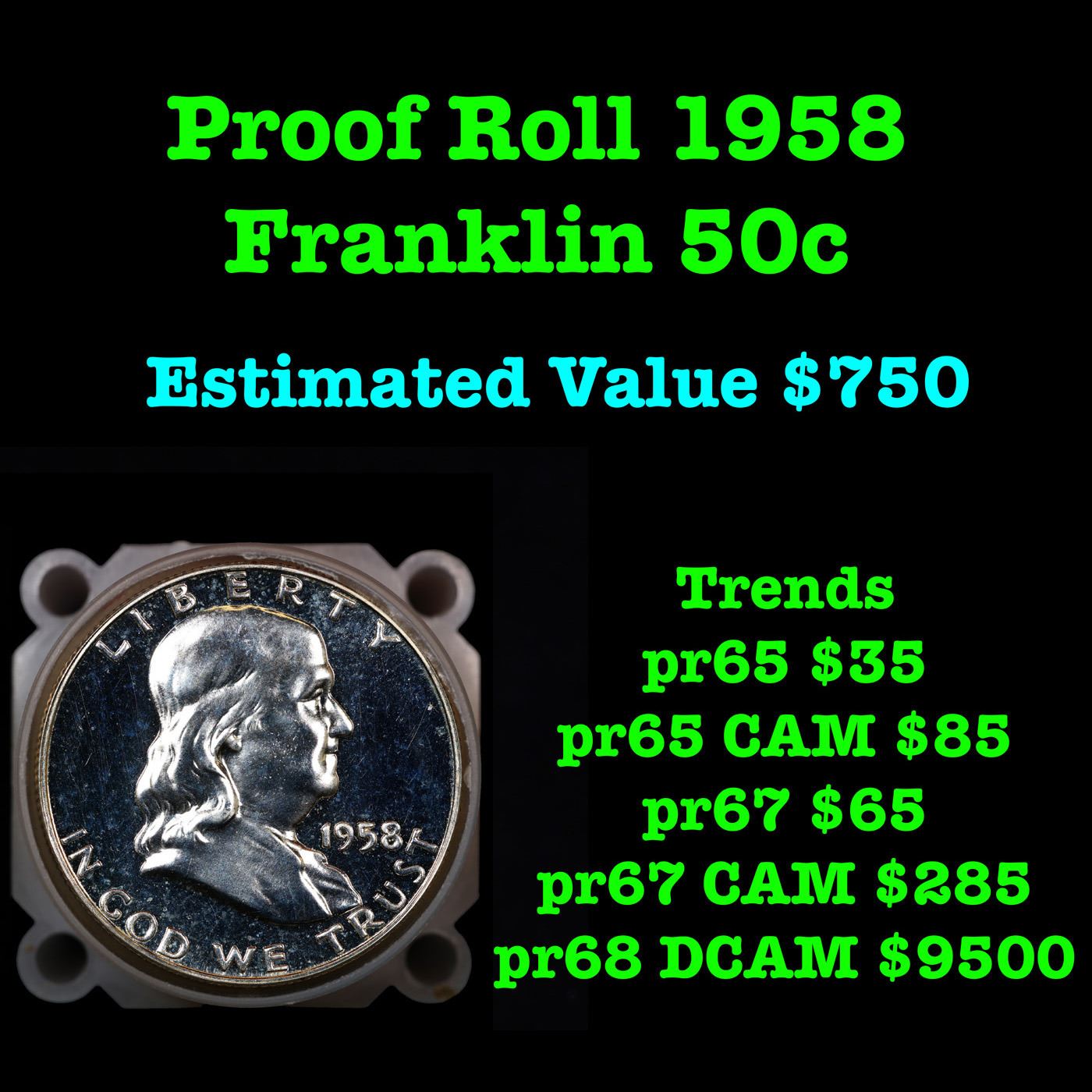 Full roll of Proof 1958-p Frankllin 50c, 20 Coins total Franklin Half Dollar 50c. All Apper to be pr65 or higher.
