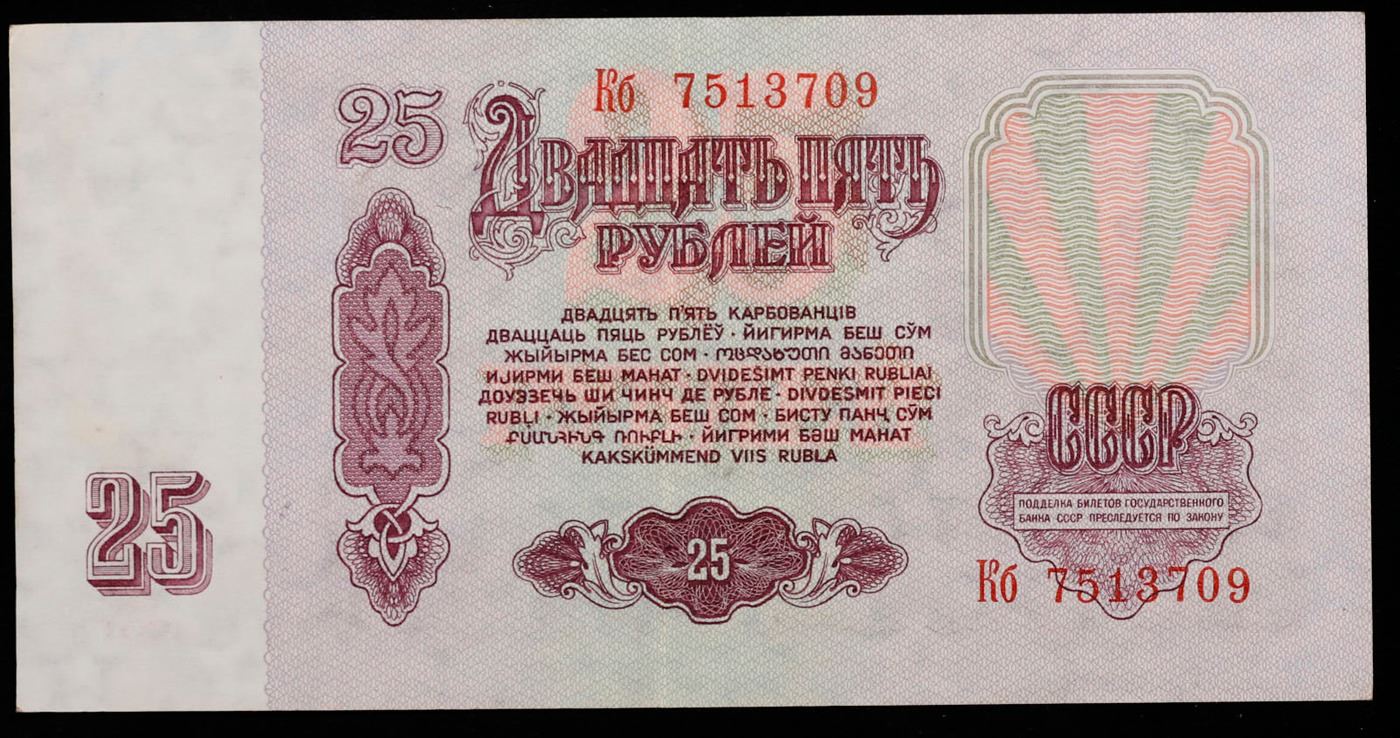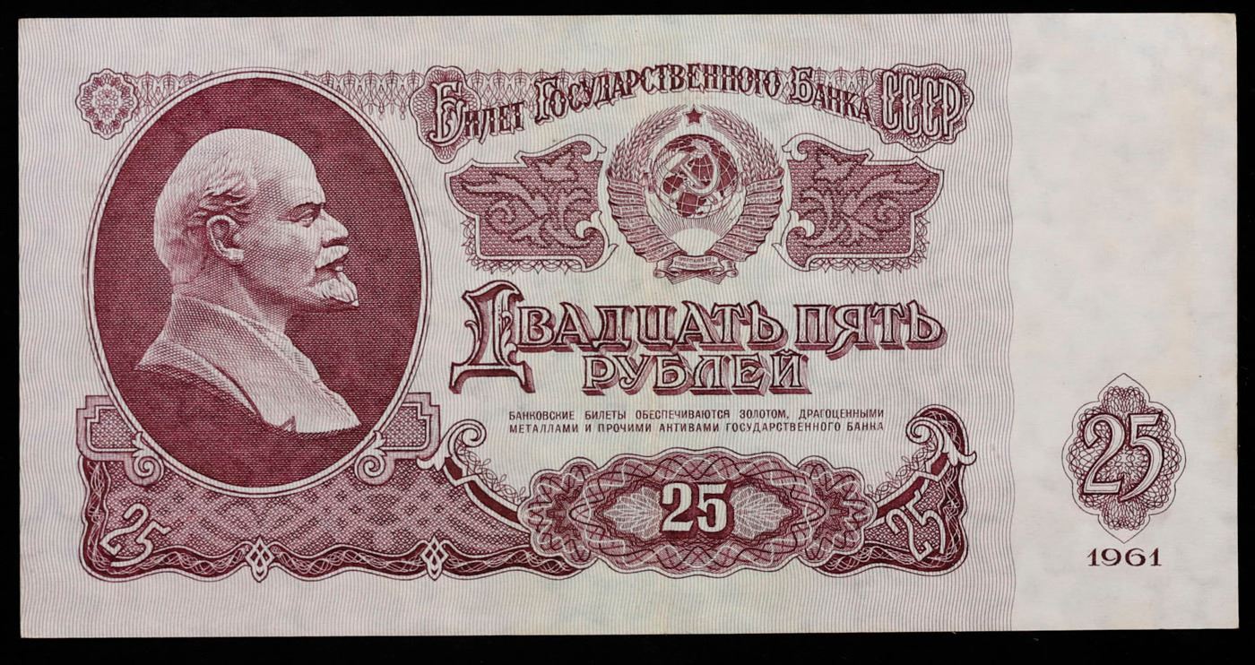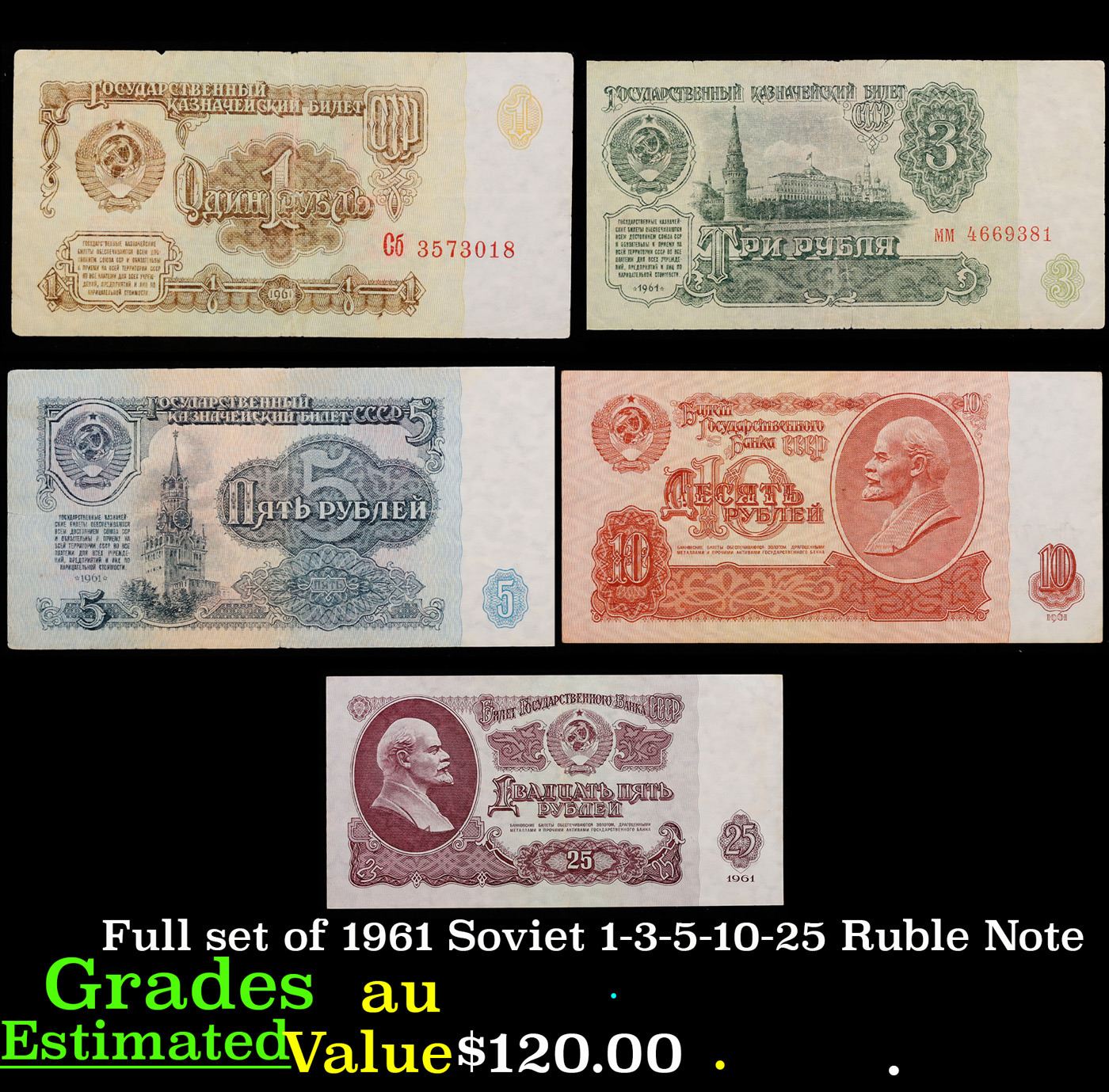 Full set of 1961 Soviet 1-3-5-10-25 Ruble Note Grades au.