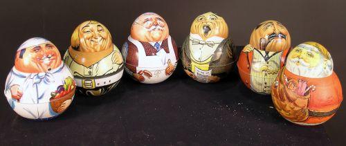 Full set of 6, "Roly-Poly" reproduction tins from the 1980's by Chein Industries
