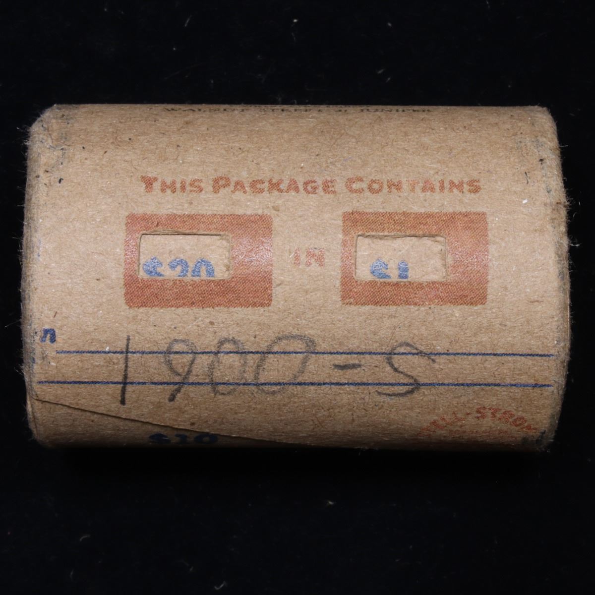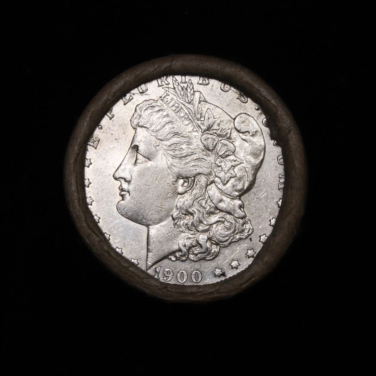 Full solid date 1900-s Morgan silver dollar roll, 20 coins