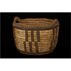 Fully Imbricated Klikitat Handled Berry Basket ca. 1900 7" D. 4 3/4" H. Fine Condition
