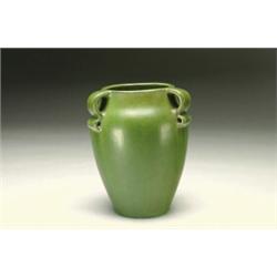 of ovoid shape decorated with a running green glaze, minor glaze chips to ground base rim, ht. 6.4” — 16.3 cm., impressed 887, applied paper label