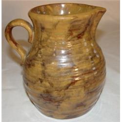 Fulper art pottery handled pitcher with brown glaze marked Fulper on bottom. 6" tall.