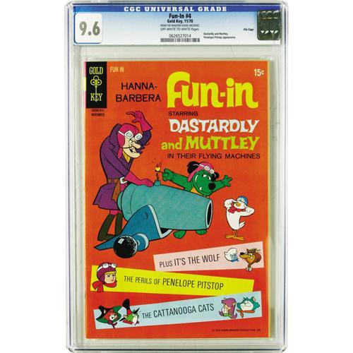 <B>Fun-In #4-8 and 11-13 File Copies CGC Group (Gold Key, 1970-74).</B></I> All issues in this group are CGC 9.6. Issues #4-8 have "off-white to white" page quality, and #11-13 have white pages. Included here are #4 (CGC census 4/06: 3 in 9.6, none higher), #5 (5 in 9.6, none higher), #6 (1 in 9.6, none higher), #7 (1 in 9.6, none higher), #8 (1 in 9.6, none higher), #11 (2 in 9.6, none higher), #12 (5 in 9.6, 1 higher), and #13 (2 in 9.6, none higher). Overstreet 2006 NM- 9.2 value for group = $336. <I>From the Random House Archives.</B></I>