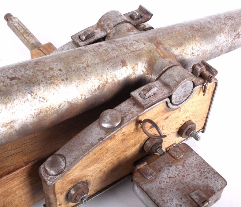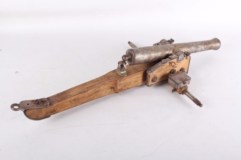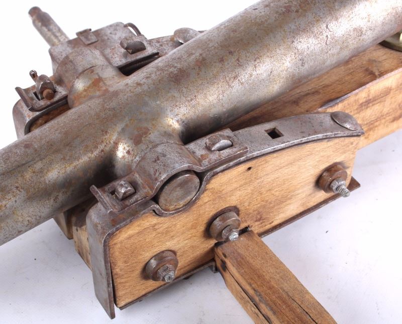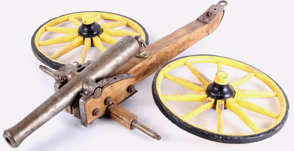 This lot features a functioning black powder Jukar .70 caliber cannon. This piece is a very cool working recreation of a brass field gun, it looks to be a one of a Napoleon 1857 model field gun common during the American Civil War. It is in .70 caliber. The cannon is in good condition, but does not have the wheels attached and surface rust. It is marked "1040 Cal.70 Jukar Spain Black Powder Only." It measures