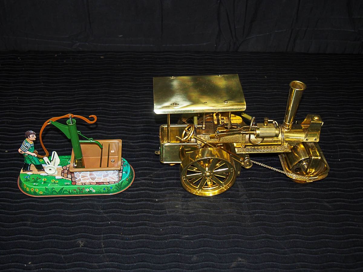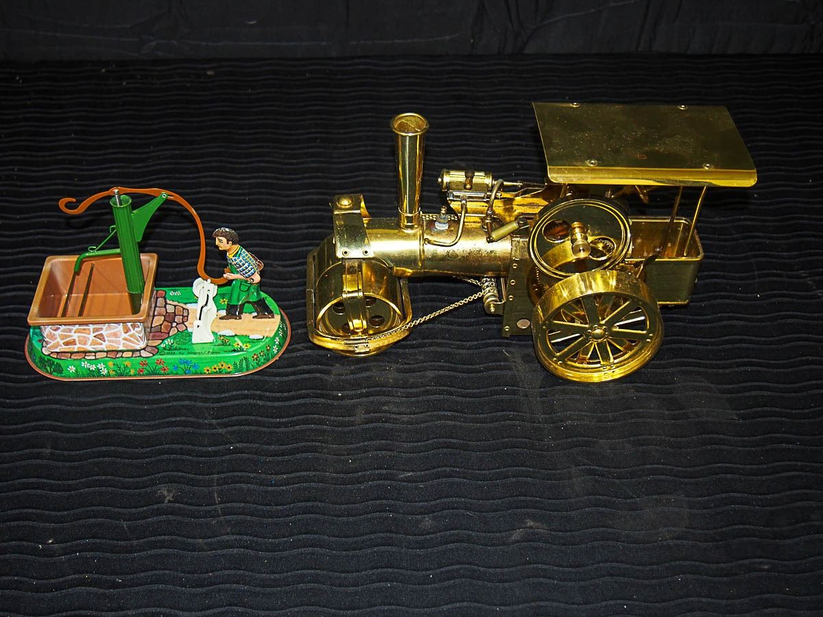 Functional Brass Steam Roller Model w/ Tin Belt Driven Water Pump