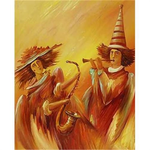 One oil paintings from series "Carved angels & clowns" only 9 pieces.