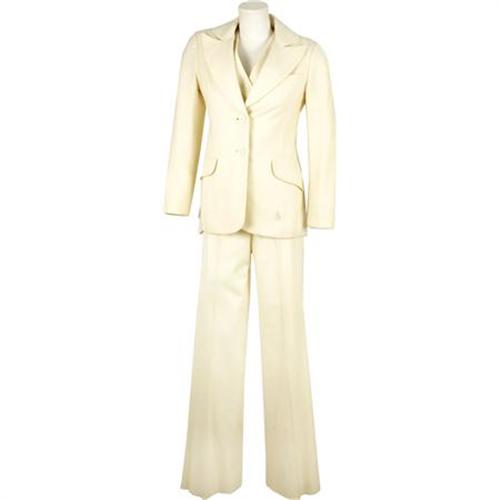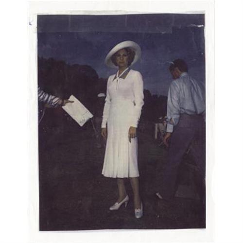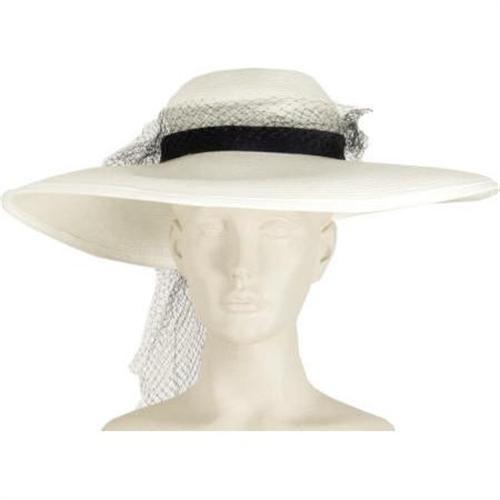 <B>"Funny Lady" Barbra Streisand Screen-Worn Hat.</B></I> A white straw hat with large brim featuring a black band and netting worn by Barbra Streisand as "Fanny Brice" in <I>Funny Lady</B></I> (1974). Fanny was seen wearing this hat with a gray scarf tied around it. The lot also includes a three-piece beige wool suit ensemble custom-made for Streisand and the film, though likely for a cut scene. Acquired from Warner Bros. Studios, who had stored these costumes since production. <I>Authenticated by the world's foremost curators of television artifacts, The Comisar Collection of Beverly Hills.</B></I><BR><BR><b>Shipping:</b> Clothing, Costumes & Jerseys (<a target="_blank" href="http://www.heritageauctions.com/common/shipping.php">view shipping information</a>)