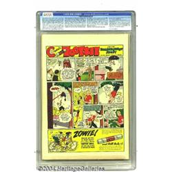 <B>Funny Stuff #1 (DC, 1944) CGC VF+ 8.5 Off-white to white pages.</B></I> Of the three copies certified by CGC, this beautiful specimen sports the highest grade awarded to this issue. The rich cover colors pop in contrast against the clean, white background. And the issue marks two first appearances: the cover-featured Three Mouseketeers and the Flash parody, the Terrific Whatzit. Art by Sheldon Mayer. Overstreet 2004 VF 8.0 value = $550; VF/NM 9.0 value = $825. <BR><BR><B>Important notice:</B> Heritage usually auctions material at the rate of 200-250 lots per hour. On some occasions eBay Live bid software or the Internet may not be able to keep up with the pace of the auction. We recommend placing a realistic absentee bid now as insurance to avoid disappointment. Occasionally the auctioneer may eliminate or reject an eBay Live bid, and the auctioneer may also reopen a lot after the close of the eBay live bidding (usually because we missed an audience bid), and may reject your bid even if it shows you as the winning bidder. By bidding via eBay Live, you agree that Heritage may award the lot to another bidder at its sole discretion under the circumstances described above or any other reasonable circumstances. Since eBay bids are not shown to us until we open the lot on the floor, we treat those bids just like floor bids. In most cases the floor responds before the eBay bid is presented to us, due to Internet lag time, so for consistency we have made it a policy that floor bids are always considered first over tie eBay live bids. Also please note that all Heritage lots purchased through eBay Live carry a 20% Buyer's Premium. Please make sure you read the Terms and Conditions before you bid.