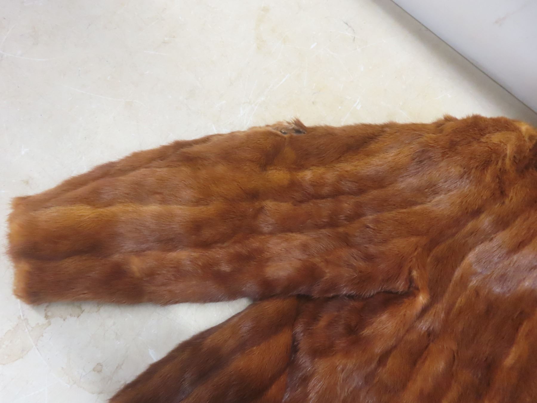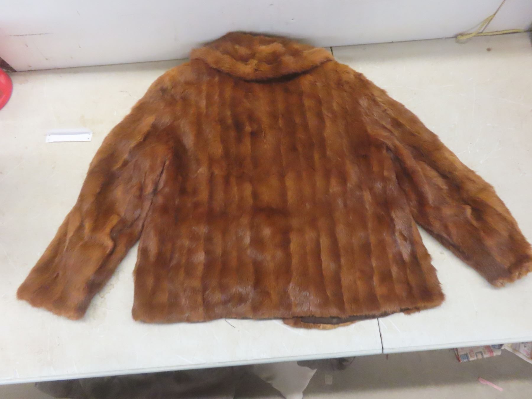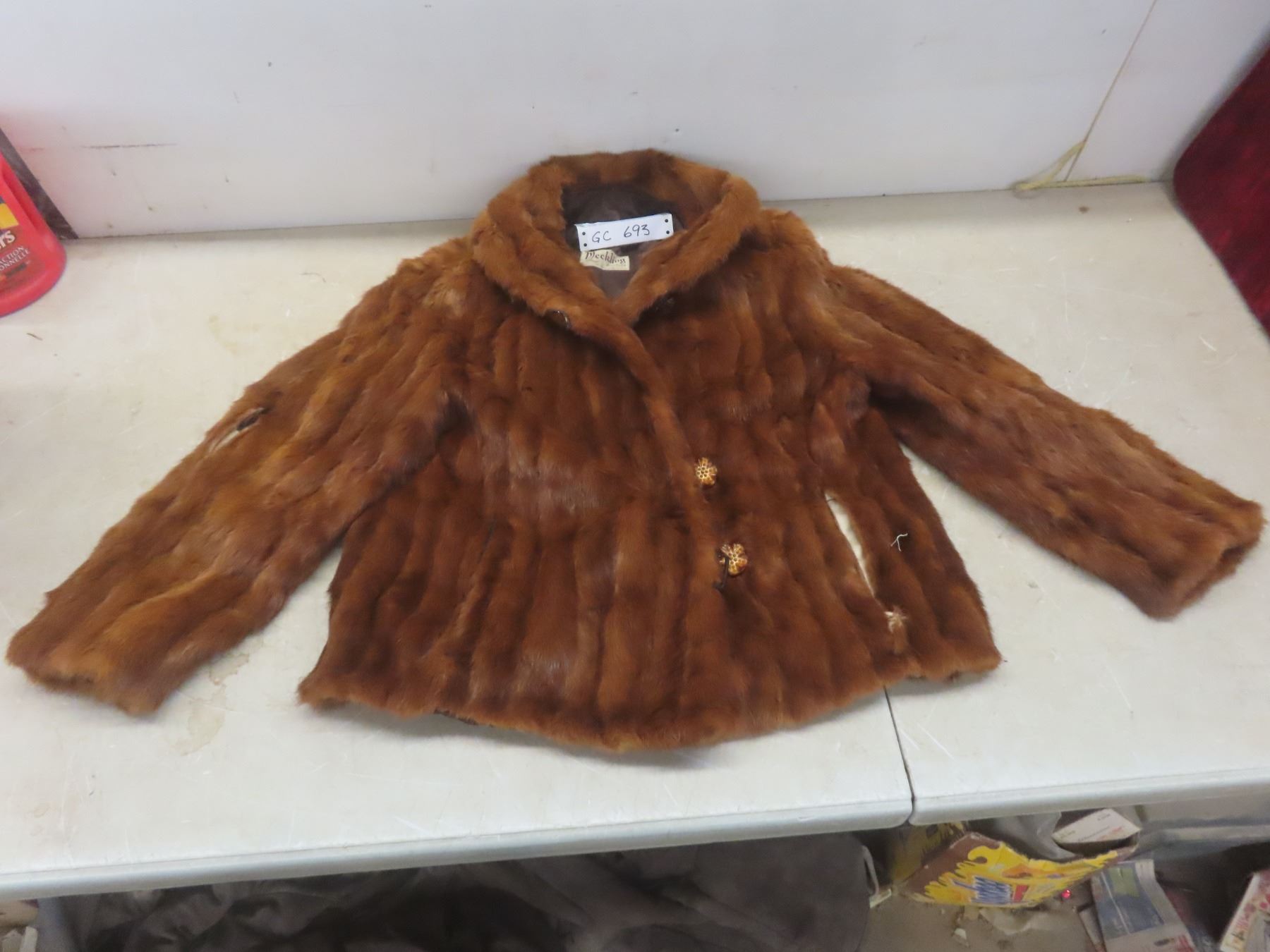 Fur Jacket, Size Small–Medium, Tears on Sleeve and Front Pocket