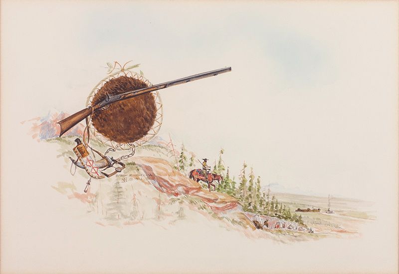 Byron Wolfe, 1904 - 1973 CAA | Signed: Byron B. Wolfe-CA rocking W brand © 1972, l/l | Media: Mixed media on paper | Dimensions: 7.5 by 11 inches