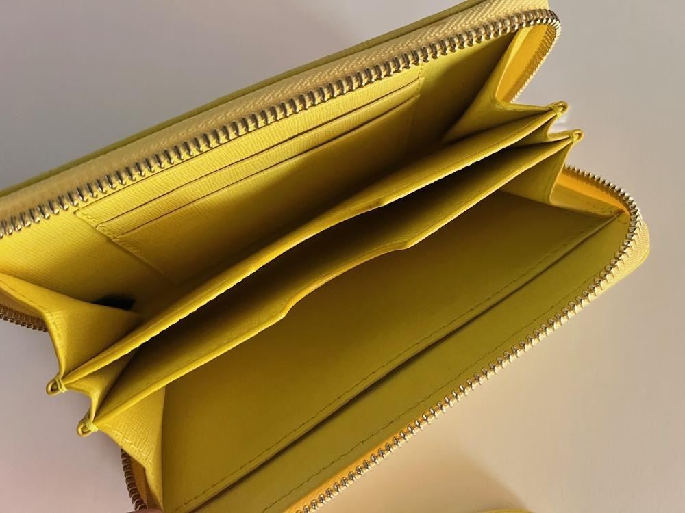 Furla Babylon L zip around wallet/wristlet in Sunny leather. High quality embossed leather with 4 credit card slots, 3 separated inner compartments, and removable wrist strap. Brand new with tags in original box with dustbag