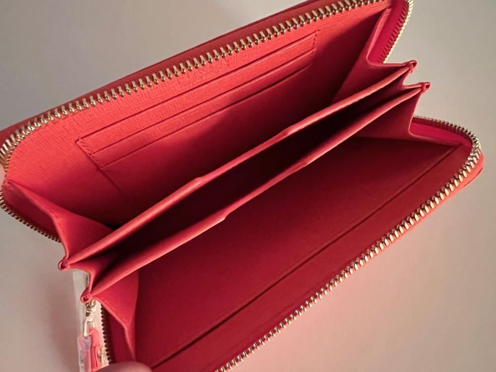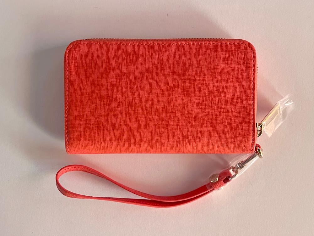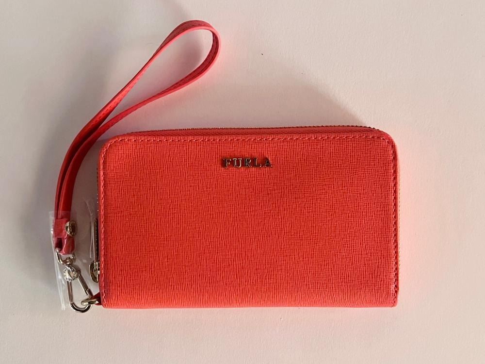 Furla Babylon L zip around wallet/wristlet in Hibiscus leather. High quality embossed leather with 4 credit card slots, 3 separated inner compartments, and removable wrist strap. Brand new with tags in original box with dustbag