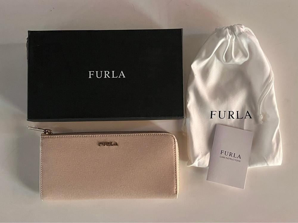 Furla Babylon XL Zip around L wallet in Acero leather. High quality embossed leather L-shaped zip-wallet with coin purse, 2 large card sections with eight slots for excellent storage capacity. Brand new with tags in original box with dustbag