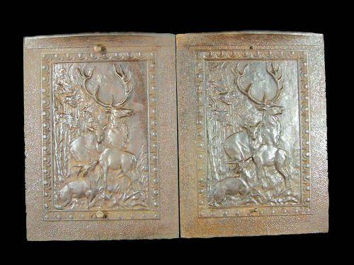 Furnace Doors with Elk Motif, cast iron. Excellent original condition. 20 X 26 3/4 inches.
