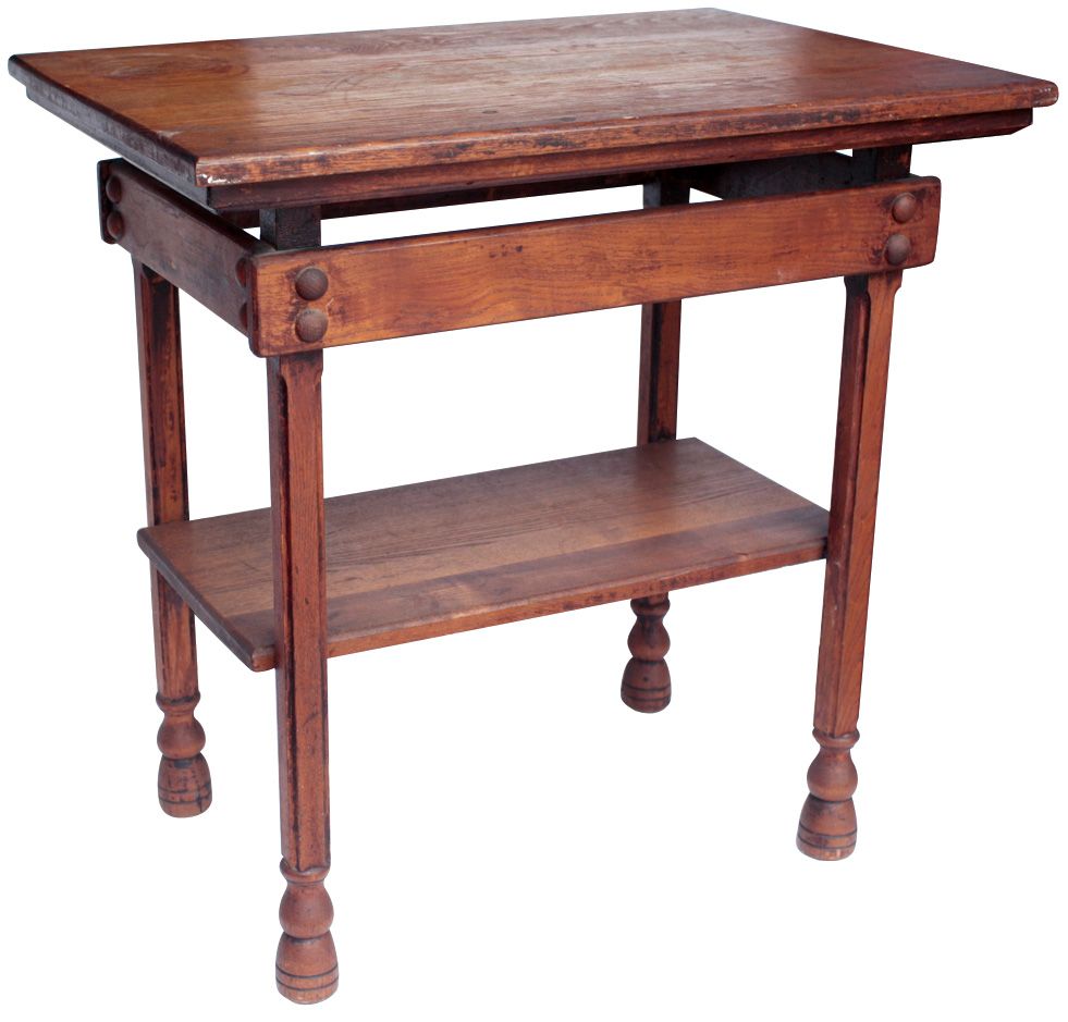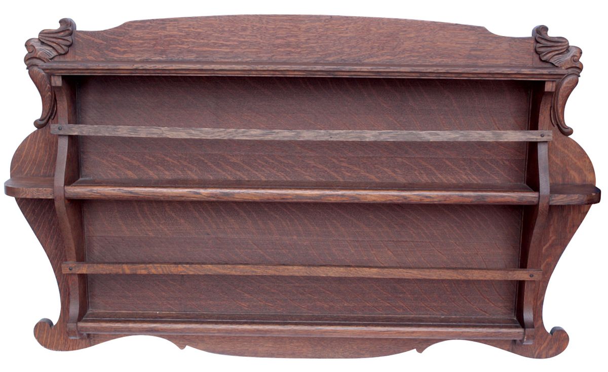 Furniture (2), Mission style oak side table & Victorian oak plate rack, VG cond w/moisture ring on top left of table, plate rack 26"H x 42.5"W, table 28"H x 27.5"W x 20"D.