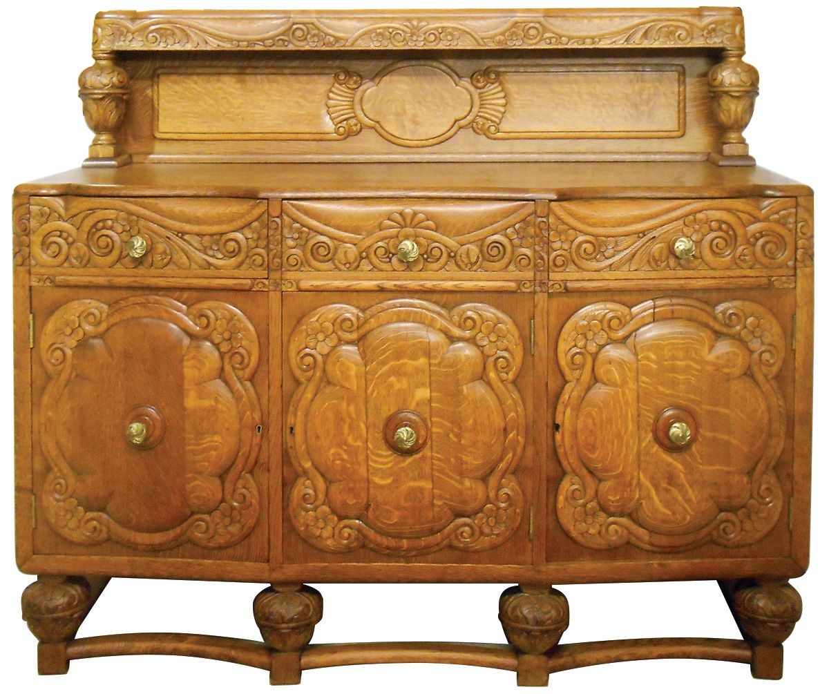 Furniture, buffet sideboard, 1930's hand-carved w/column back, from Tottenham, North London, England