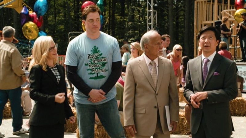 (Summit Entertainment 2010) These shirts were acquired by the production for use by Brendan Fraser as "Dan Sanders". The light blue short sleeve shirt is a size large and features the "Rocky Springs Forrest Festival" logo on the front and the "Lyman Enterprises" logo on the back. The long sleeve shirt is a size X-large, both shirts are in very good condition with only minor wear from use.