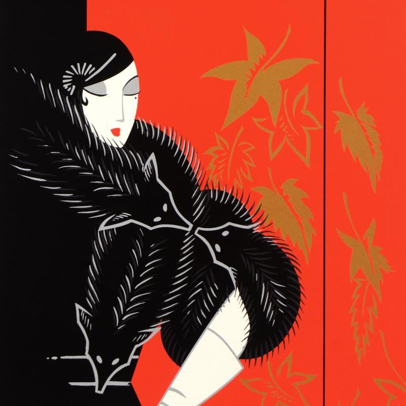 "Furs" is a limited edition serigraph on paper by Erte (1892-1990), numbered and hand signed by the artist. Includes Certificate of Authenticity. Measures approx. 30" x 24" (with border), 17.5" x 21" (image). Due to the age of this piece and the delicate nature of the paper it may have some slight imperfections.