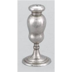 19. sz. elso harmada, antik ezüst, 13 lat finomságjelzés, "FW" mesterjelzés, körte alakú test, domborúan tagolt, áttört virágmintás szóróval, kerek talppal, 52,4 g; m: 10 cm