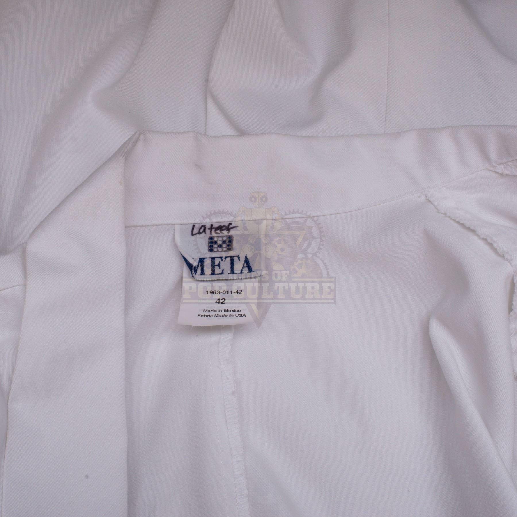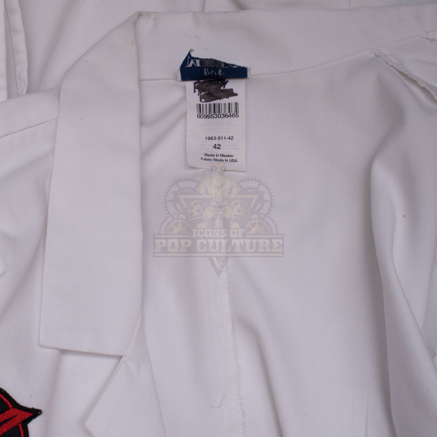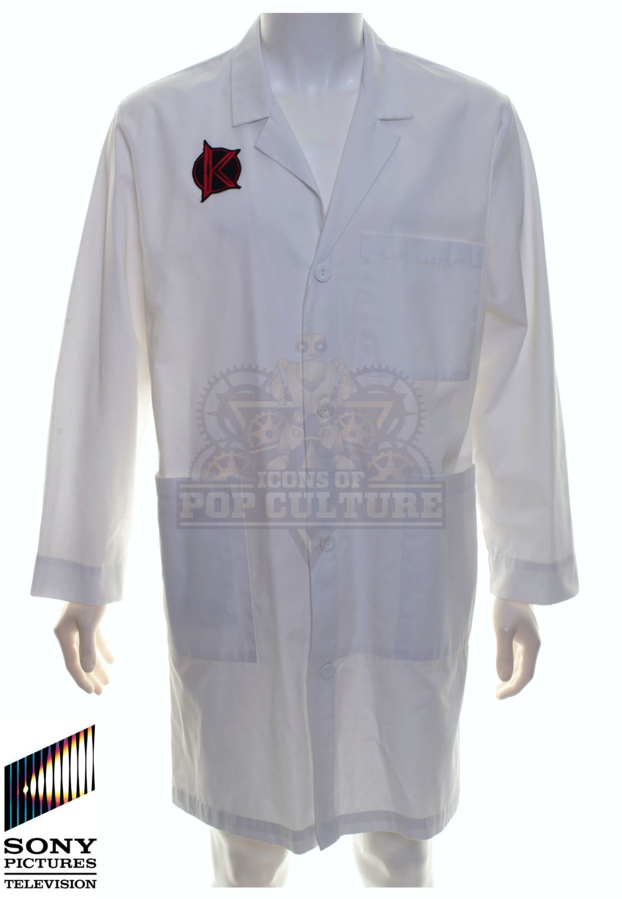 This lab coat was acquired by the production for use by various actors during filming of the first season. The white lab coat features the alternate timeline “Kronish Laboratories” patch applied to the right chest.