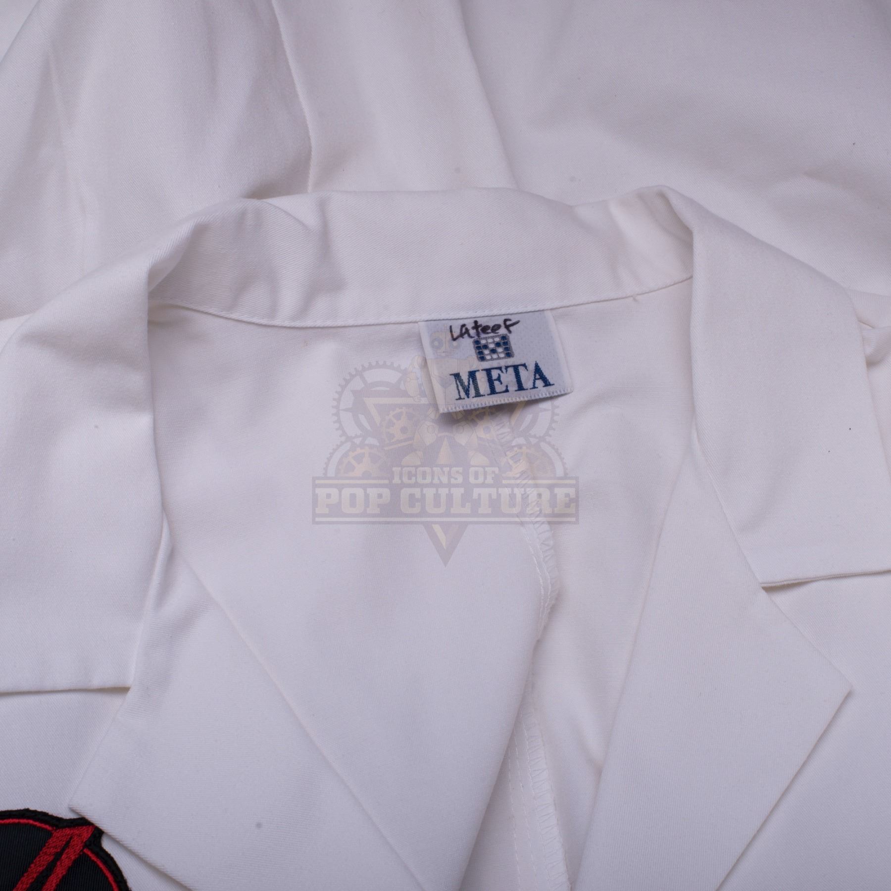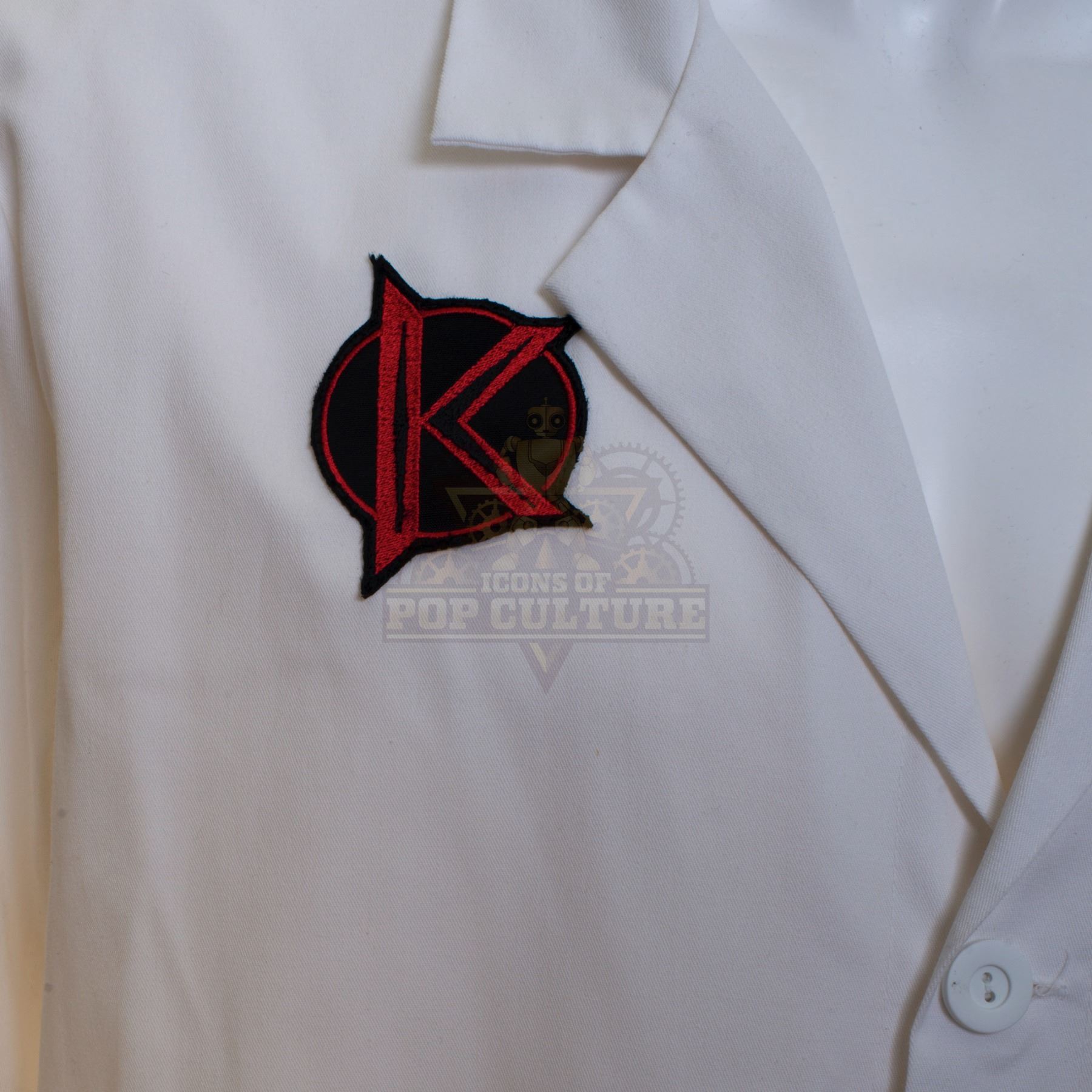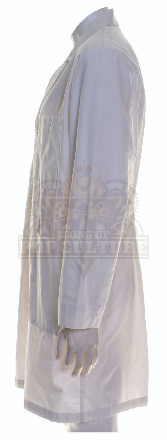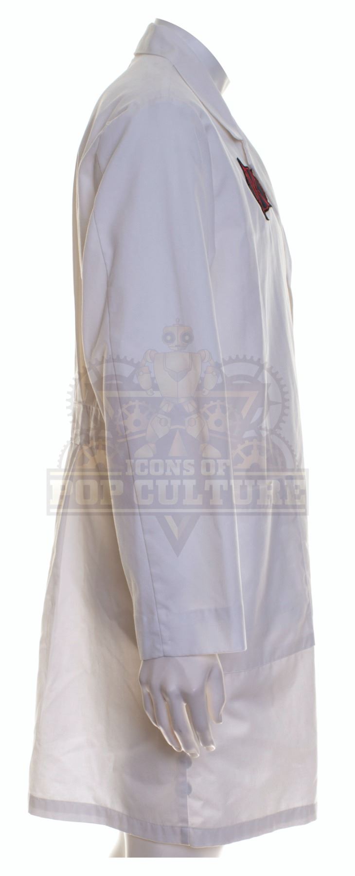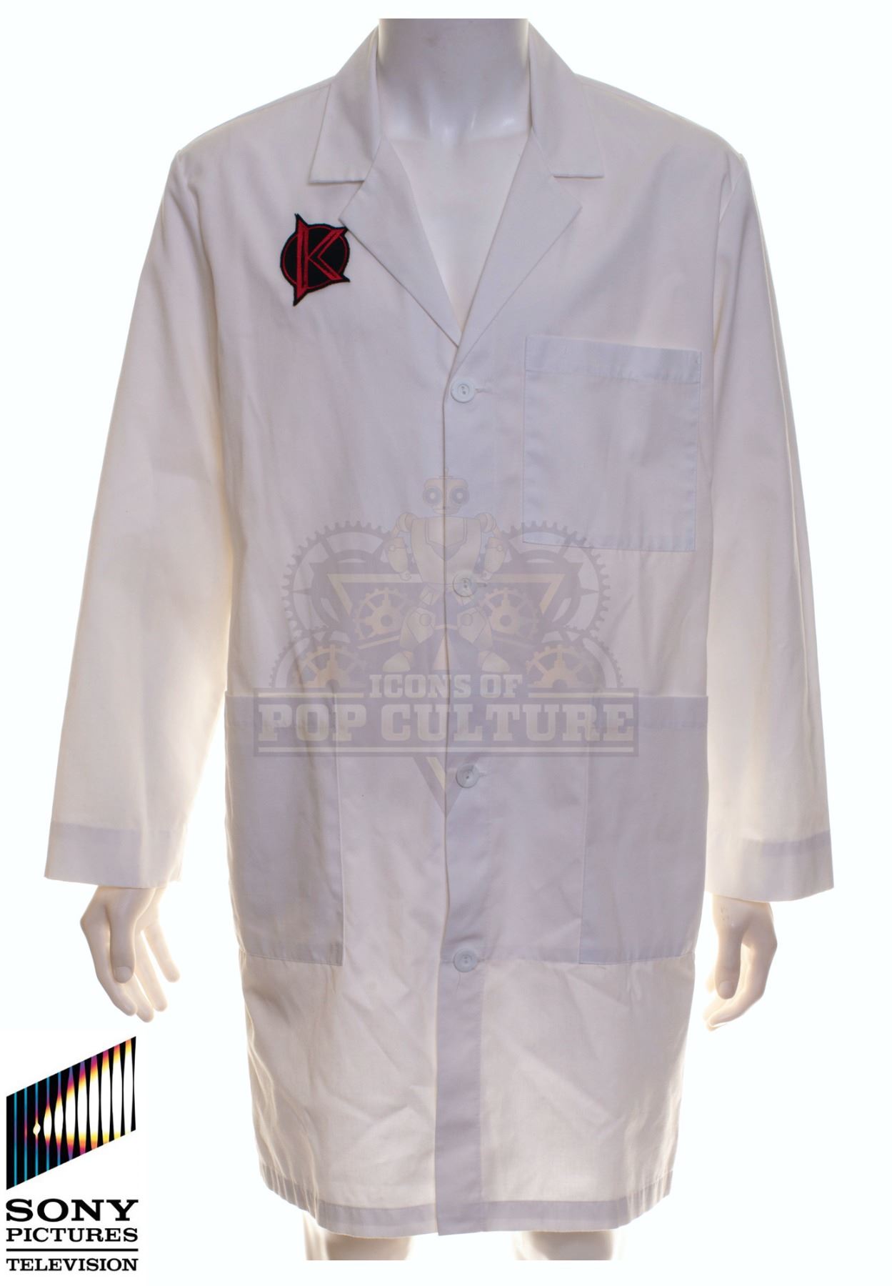 This lab coat was acquired by the production for use by various actors during filming of the first season. The white lab coat features the alternate timeline “Kronish Laboratories” patch applied to the right chest.