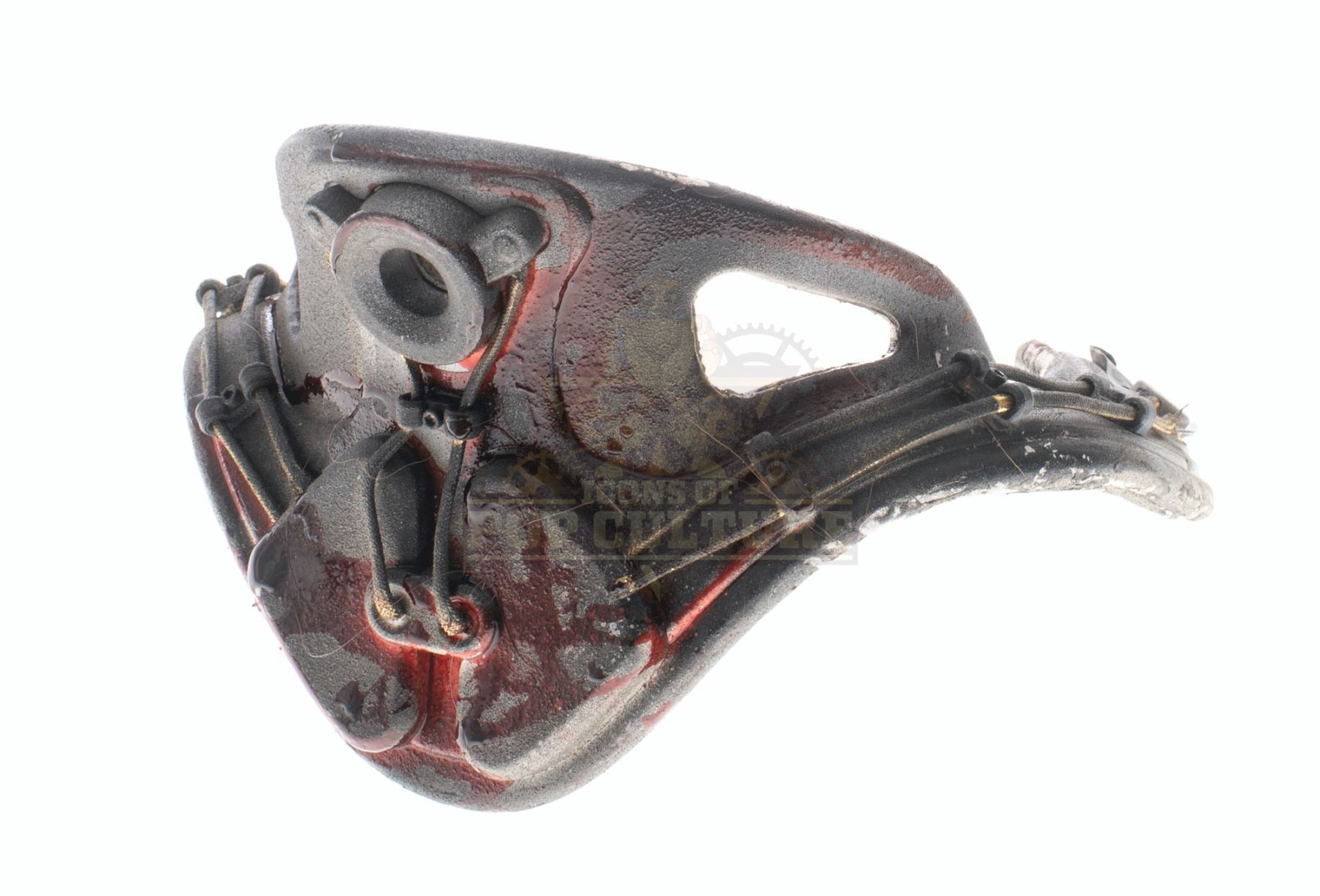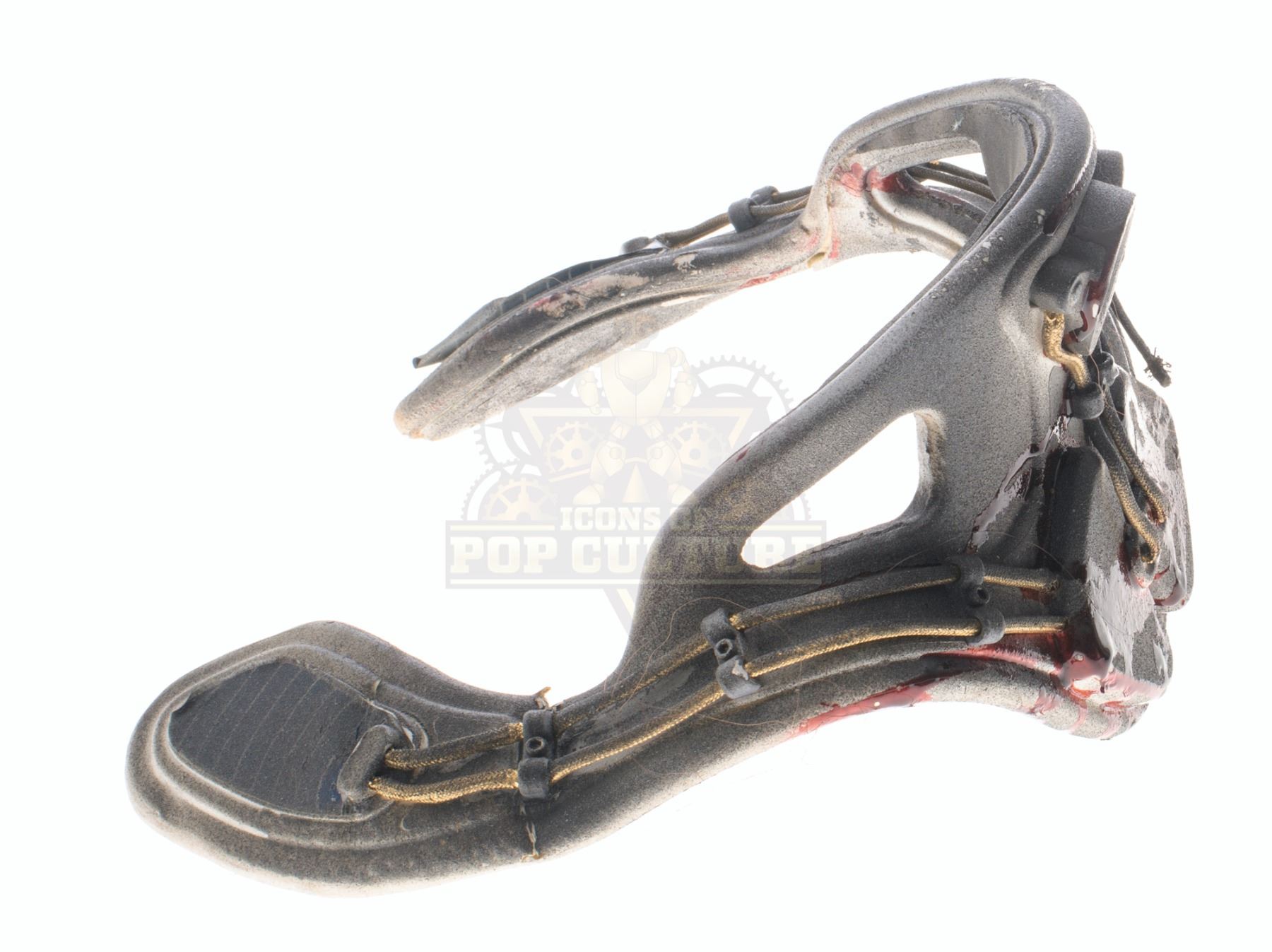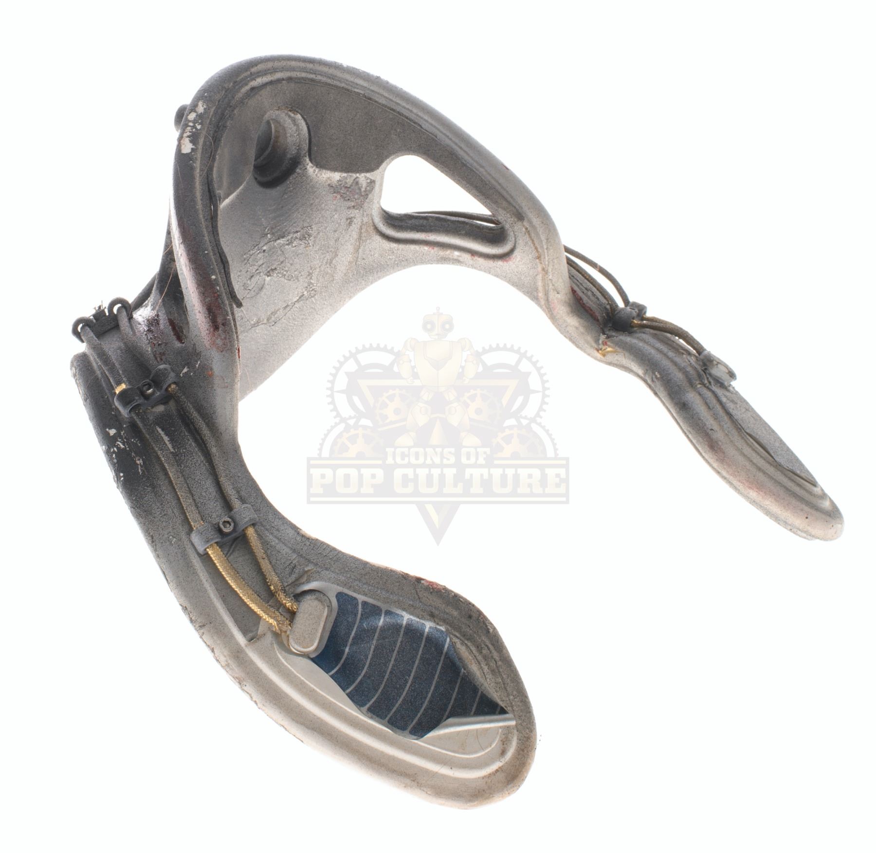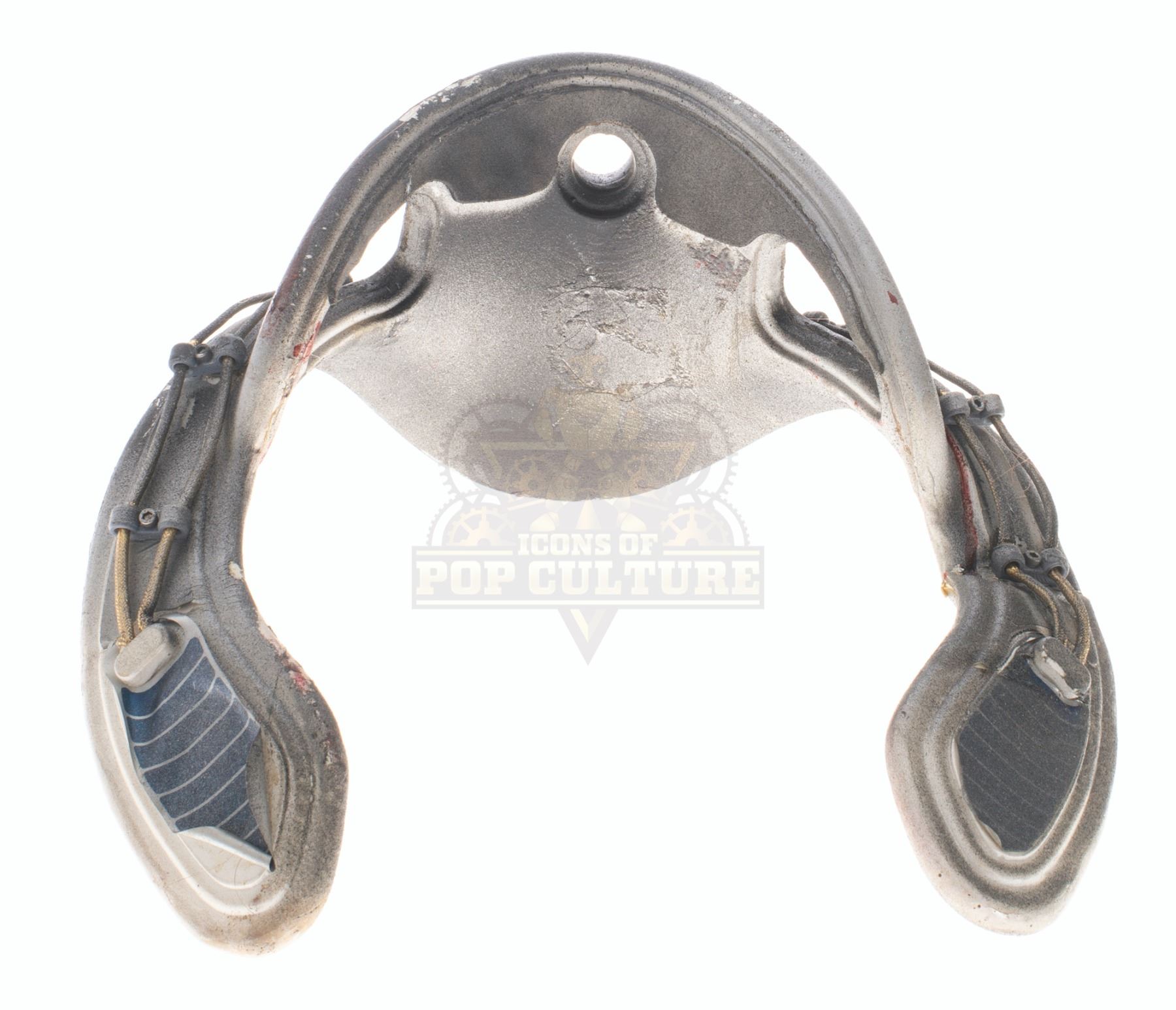 This prop collar was custom-made by the production for use set dressing in the season two episode titled “The Brain Job”. The “Cerebral Port Collar” is constructed of various materials and is a “Hero” detailed version for use in close-up shots. The collar is distressed for use and still has studio blood staining present. Measures 10” x 9.5” x 7”.