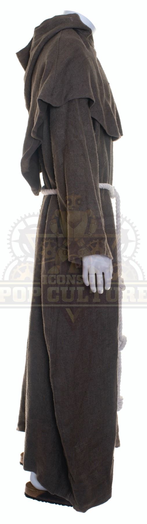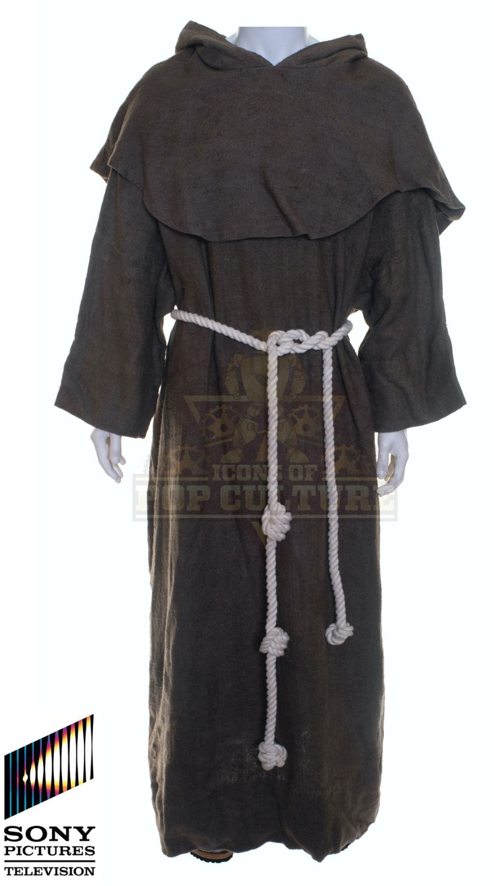This outfit was acquired and customized by the production for use by Josh Hutcherson as “Josh Futturman” in the season three episode titled “There Will Be Borscht”. The outfit consists of a long brown tunic, scapular with attached hood, tan under shirt, rope belt and a pair of sandals. Included with the outfit is a production used costume tag that details the entire outfit, change and scene numbers used.