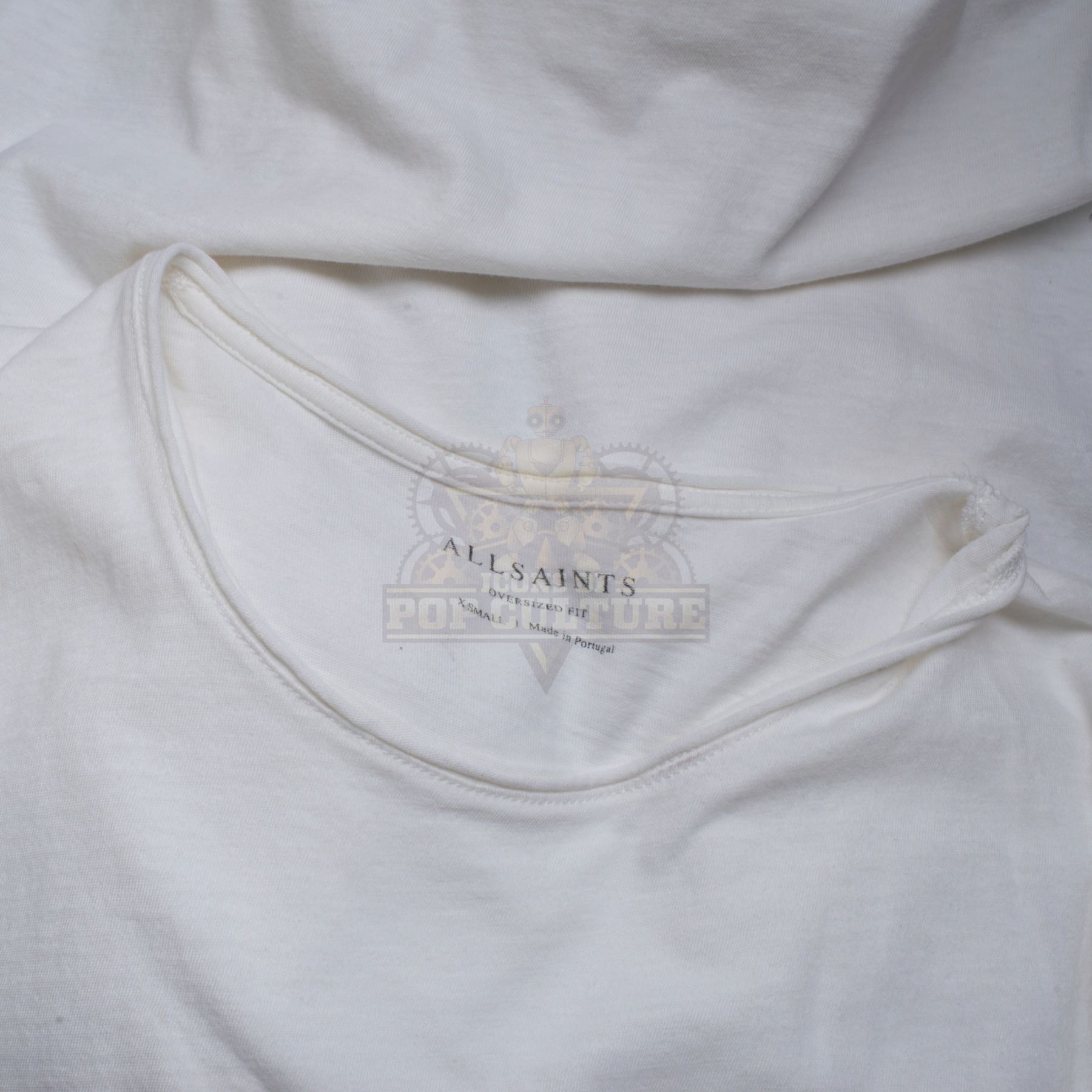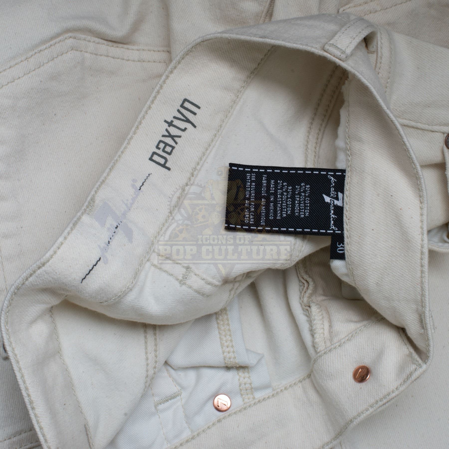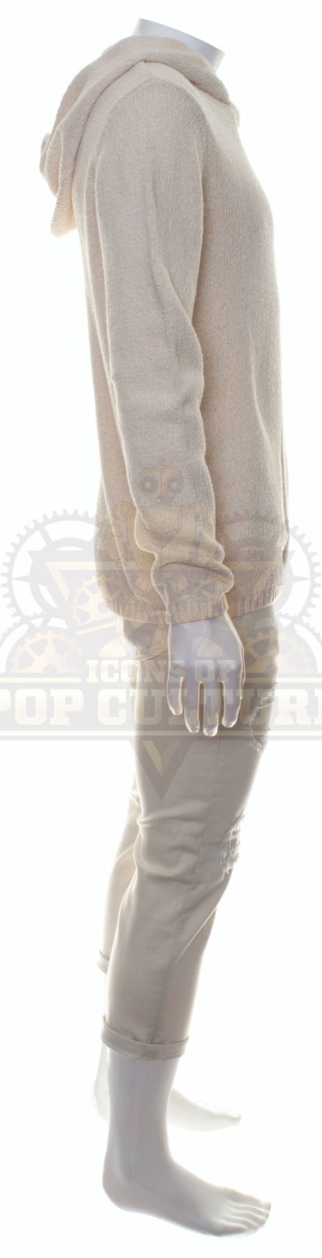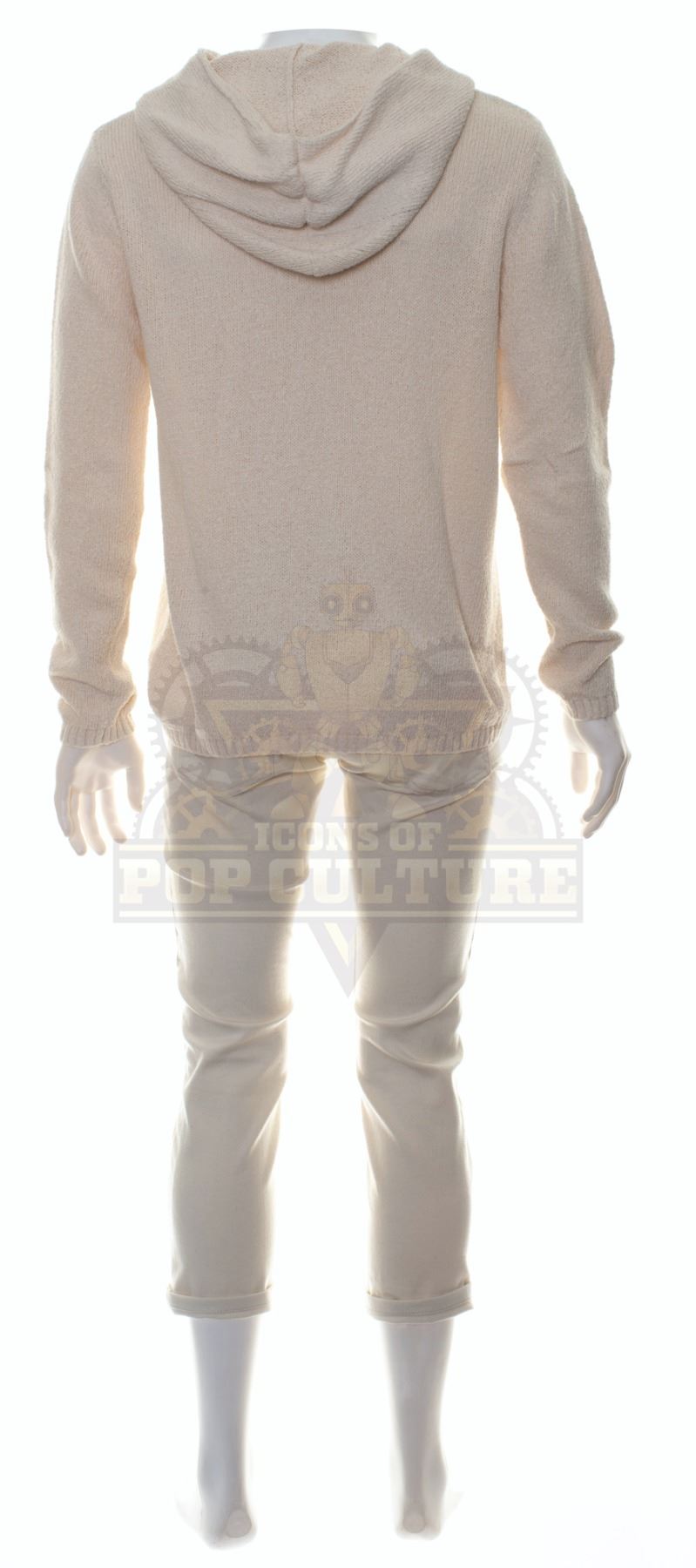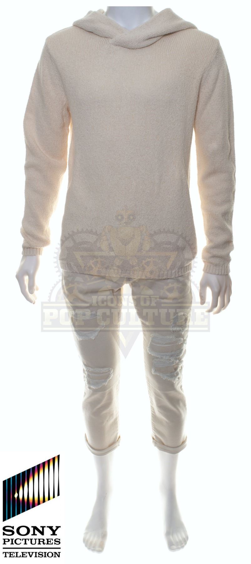 This outfit was acquired by the production for use by Josh Hutcherson as “Josh Futturman” in the season one episode titled “Prelude to an Apocalypse”. The outfit consists of a white hooded sweater, a white sleeveless t-shirt and a pair of distressed white denim jeans.