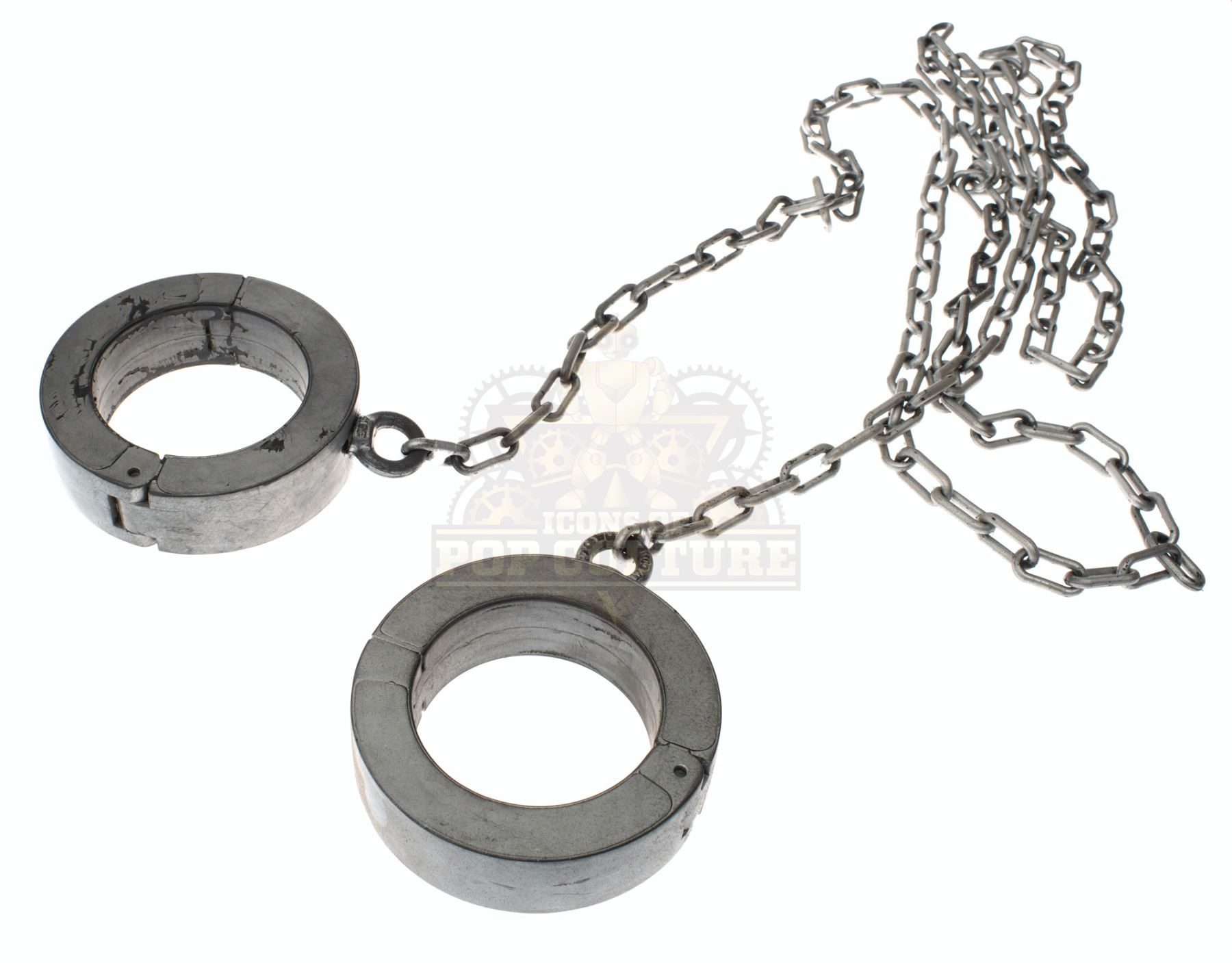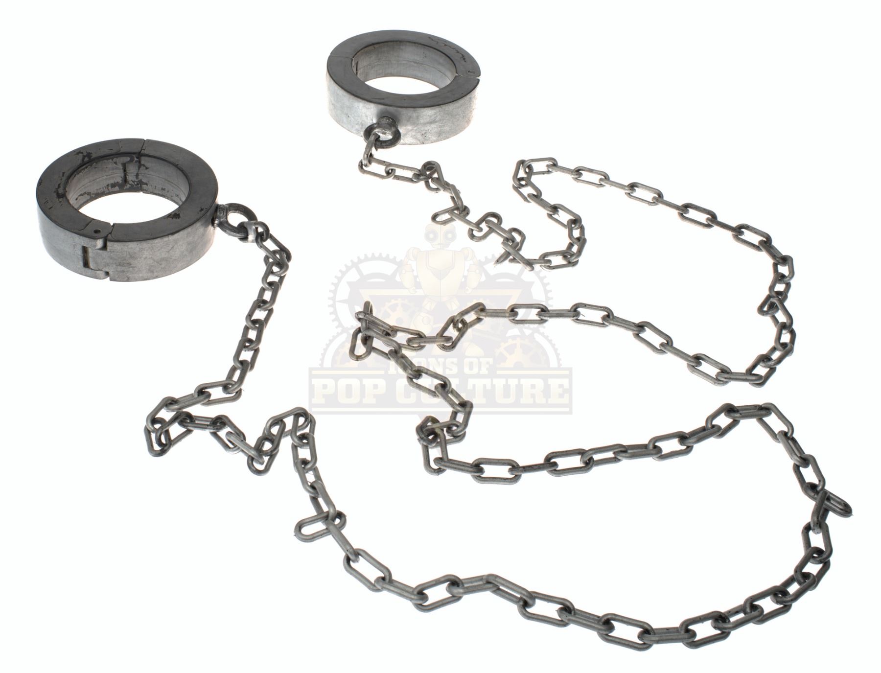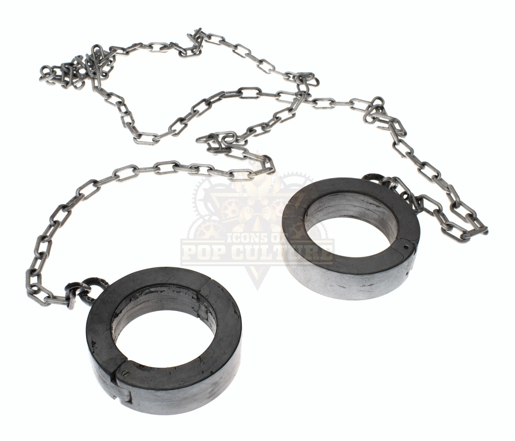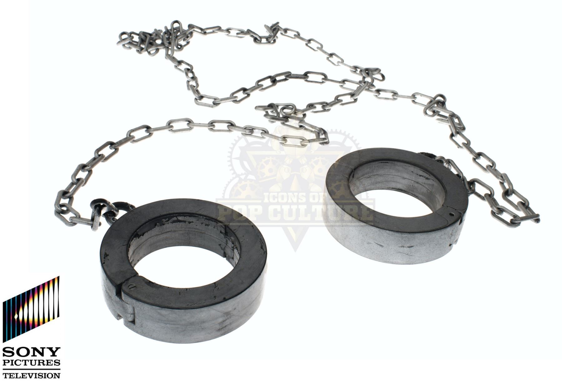 These prop shackles were custom-made by the production for use by Josh Hutcherson as “Josh Futturman” in the season two episodes titled “Countdown to Prologue” and “Guess Who’s Coming to Lunch”. The shackles made of foam rubber with an attached plastic chain.