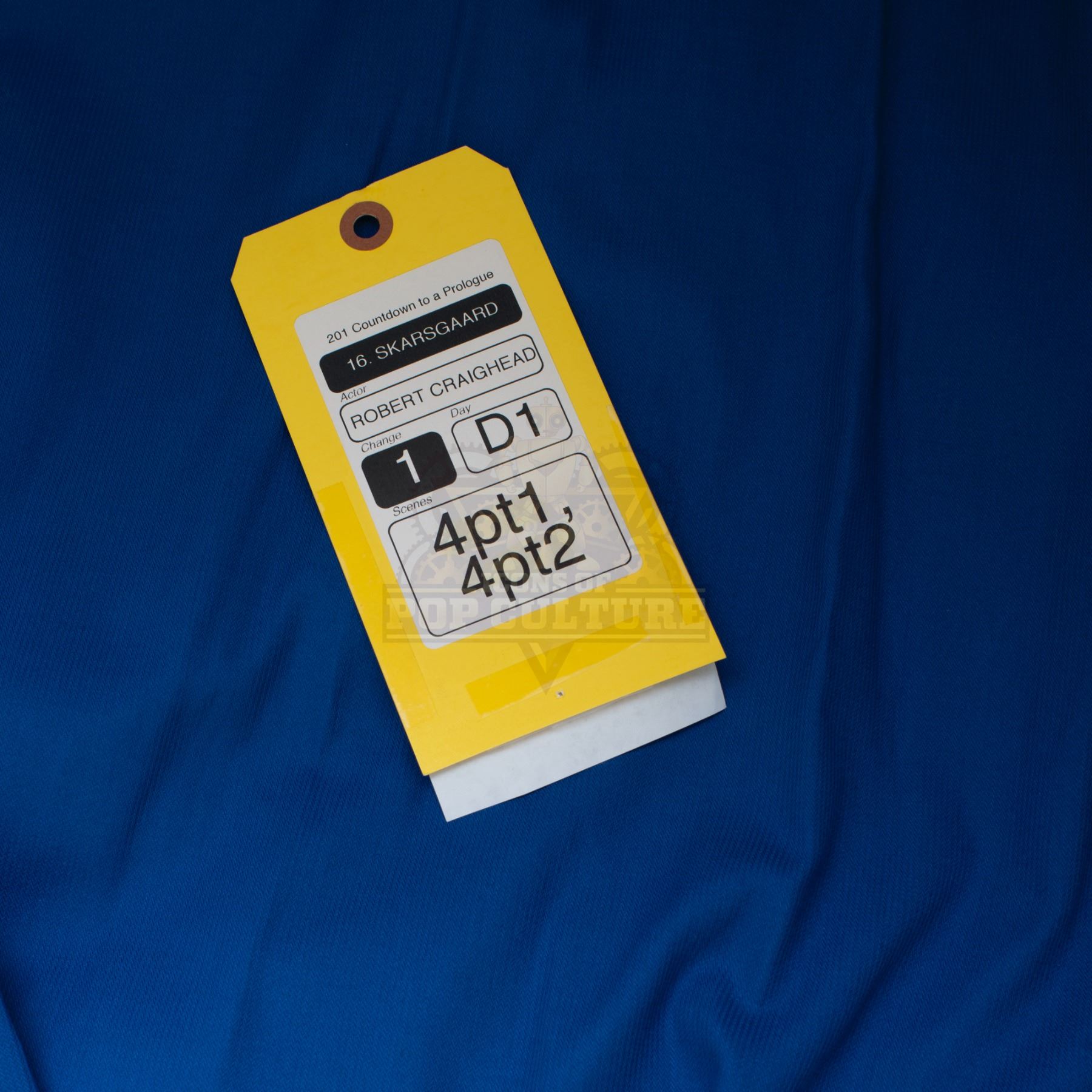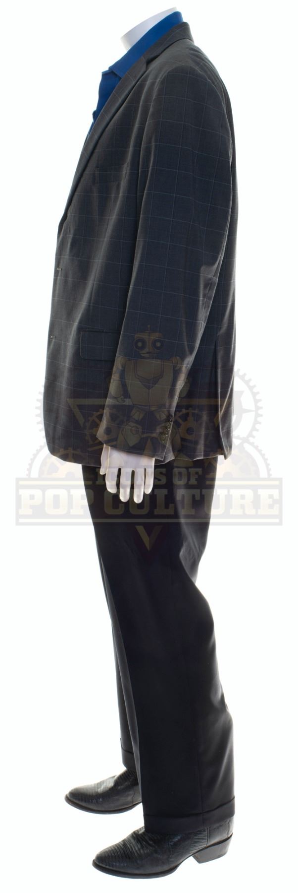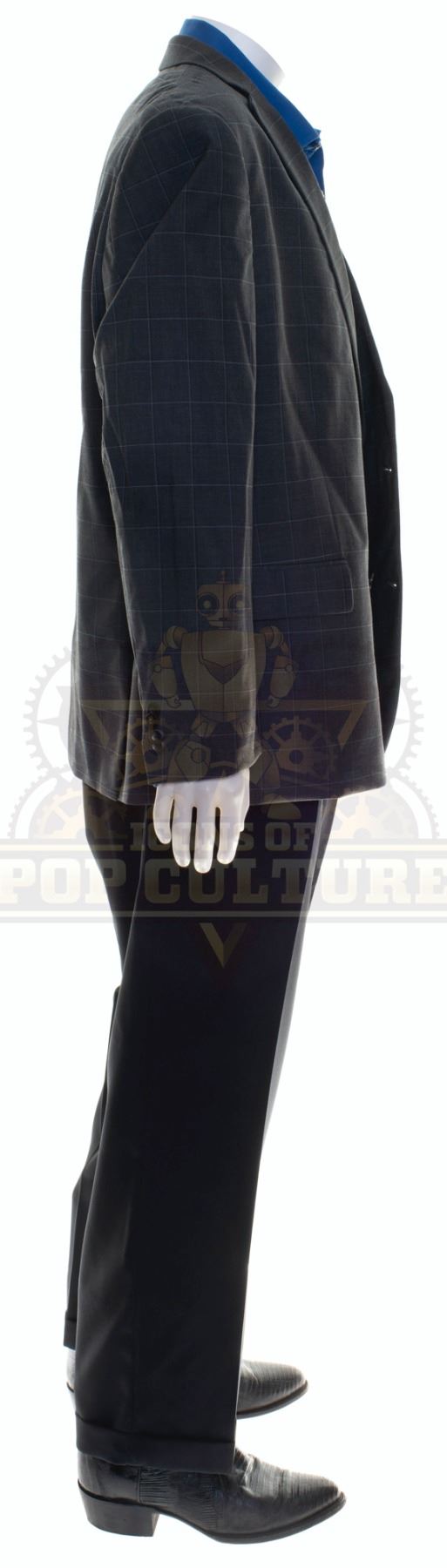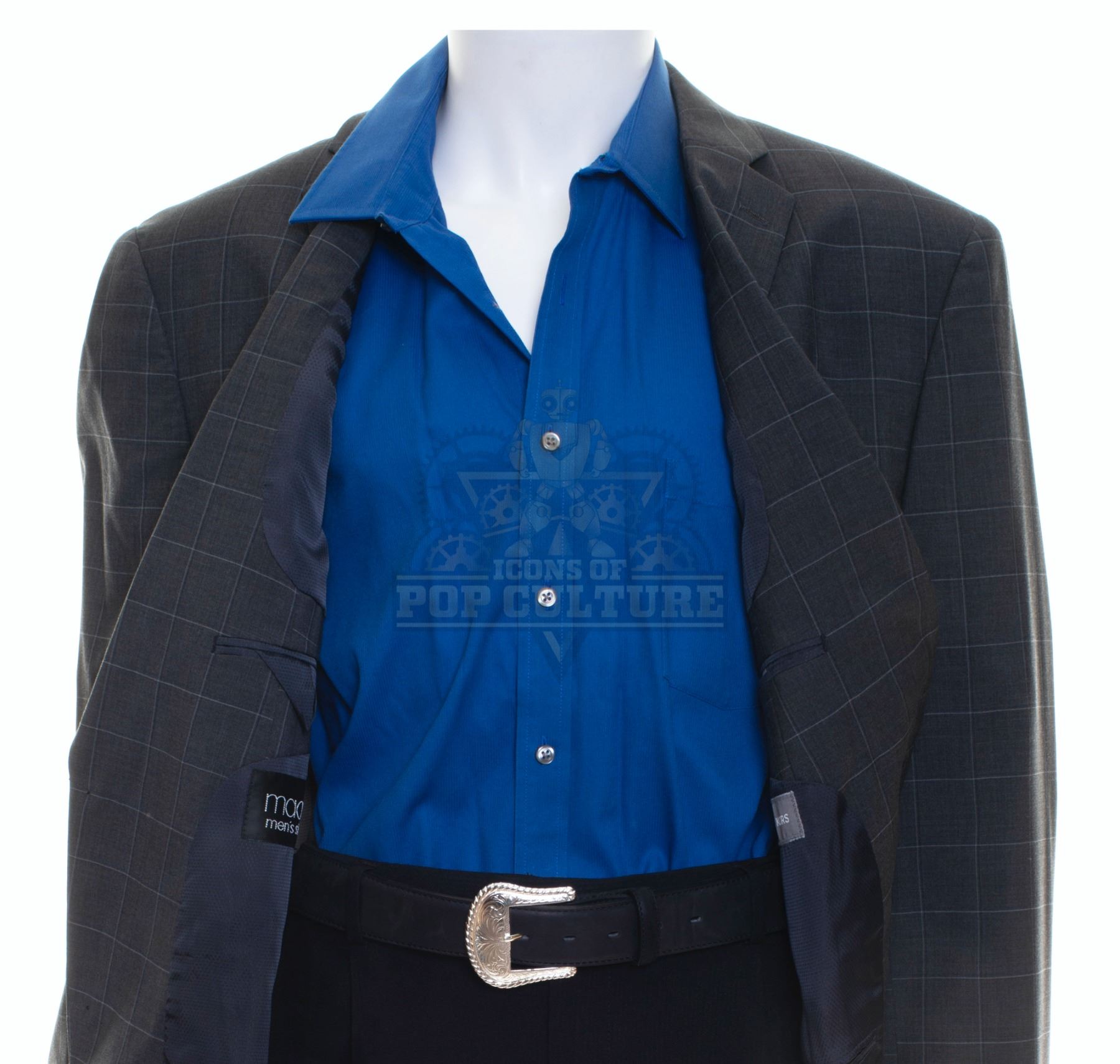 This outfit was acquired by the production for use by Robert Craighead as “Officer Skarsgaard” in the season two episode titled “Countdown to a Prologue”. The outfit consists of a suit jacket, long sleeve button front dress shirt, a pair of black pants, leather belt with western style buckle and a pair of western style boots. Included with the outfit is a production used costume tag that details the entire outfit, change and scene numbers used.