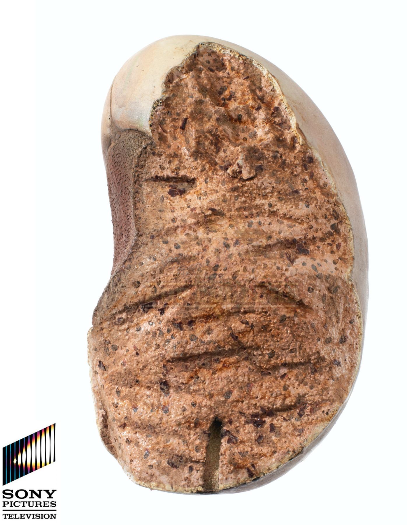 This prop All-Bean was custom-made by the production for use by various actors and as set dressing in Torque's house during filming of the season two episode titled "A Wolf in the Torque House". The partially eaten bean is made of hard foam and hand painted. Measures 15.5” x 9.5” x 7”.