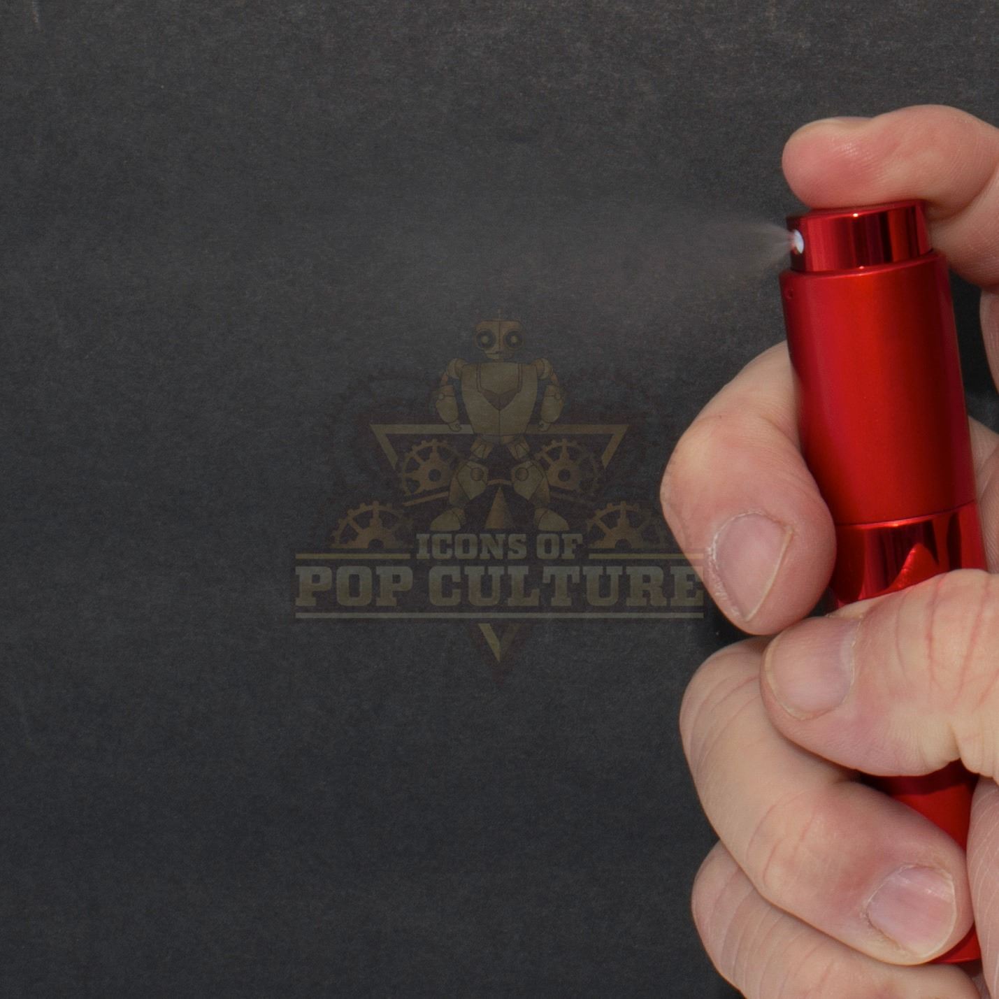 This prop skin eating poison, or “Death Rain” sprayer was acquired by the production for use by the Eliza Coupe as “Tiger”, Derek Wilson as “Wolf”, Josh Hutcherson as “Josh Futturman” and Seth Rogen as “Susan” in the season two episode titled “Ultra-Max”. The red tube-shaped sprayer features a twist-top that reveals the spray tip. Measures 4” x 1” in diameter.