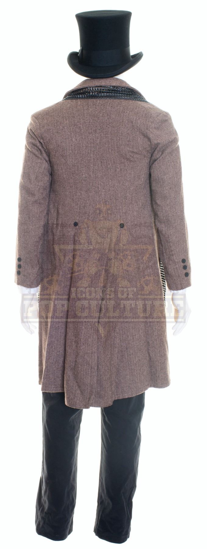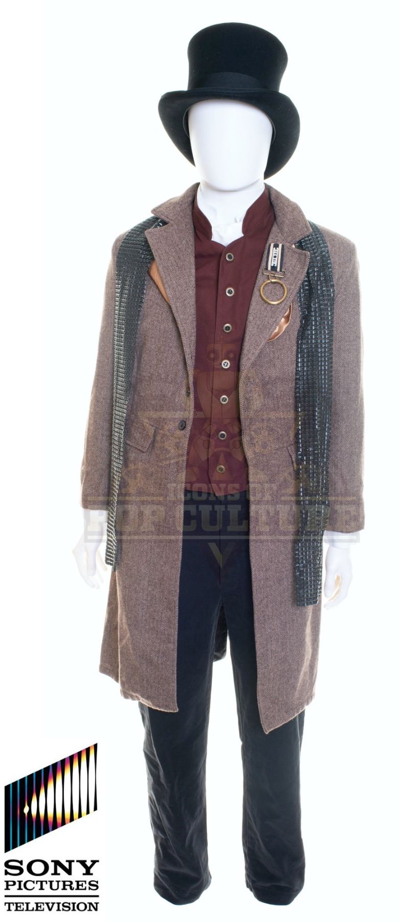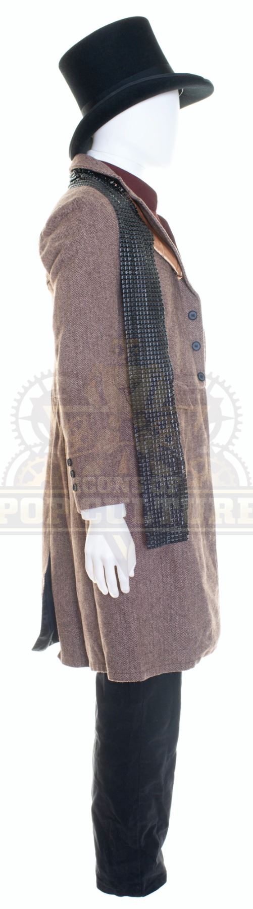 This uniform was acquired by the production for use by the Santa Clarita County Time Constabulary in the season two episode titled “Brain Job” and the season three episode titled “There Will Be Borscht”. The uniform consists of an overcoat with attachment on the left chest, white dress shirt, vest, a pair of black pants, black top hat, white ascot tie and two scarfs.