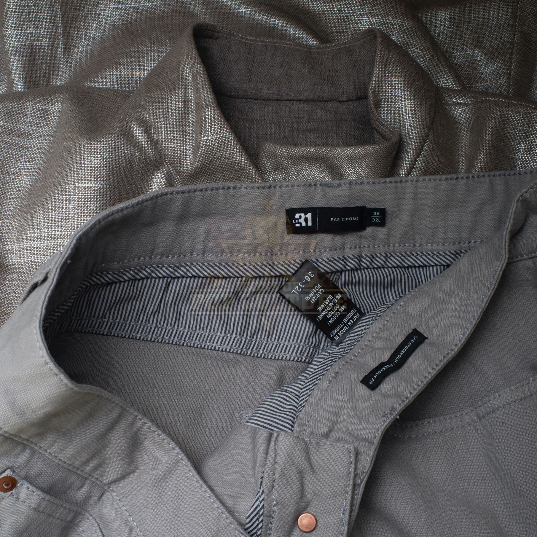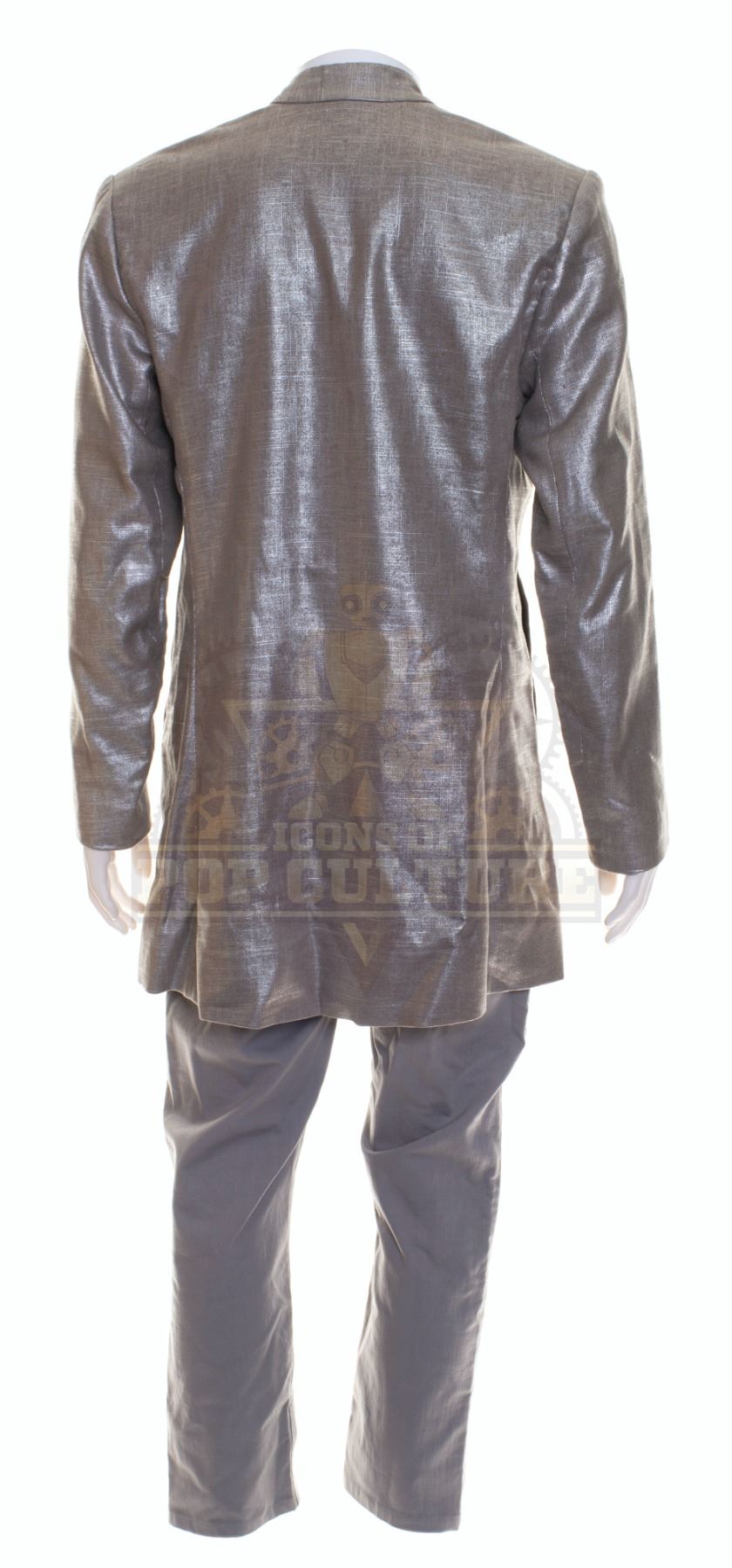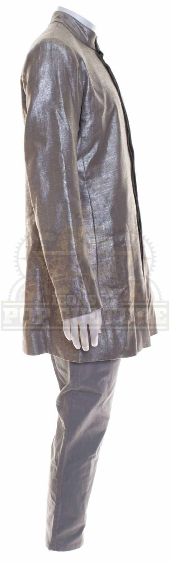 This outfit was acquired by the production for use by Seth Rogen as “Susan” in the season three episode titled “The Outlaw Wild Sam Bladden”. The outfit consists of a silver button front jacket and a pair of grey pants. Included with the outfit is a production used costume tag that details the entire outfit, change and scene numbers used.