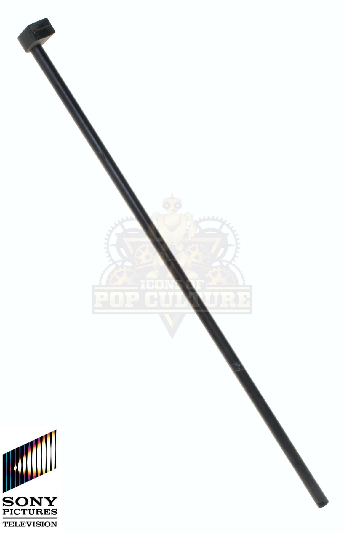 This bed rail/staff weapon was custom-made by the production for use by Eliza Coupe as “Tiger” in the season two episode titled “J1: Judgement Day”. The weapon is seen as Tiger and Wolf try to escape the Pointed Circle Cave Headquarters with Josh dying in his hospital bed. Tiger pulls a bed rail to use as a weapon, as the Pointed Circle henchmen attack. The staff weapon is made of foam rubber with a magnet imbedded at one end to attach to the hospital bed. Measures 56” in length.
