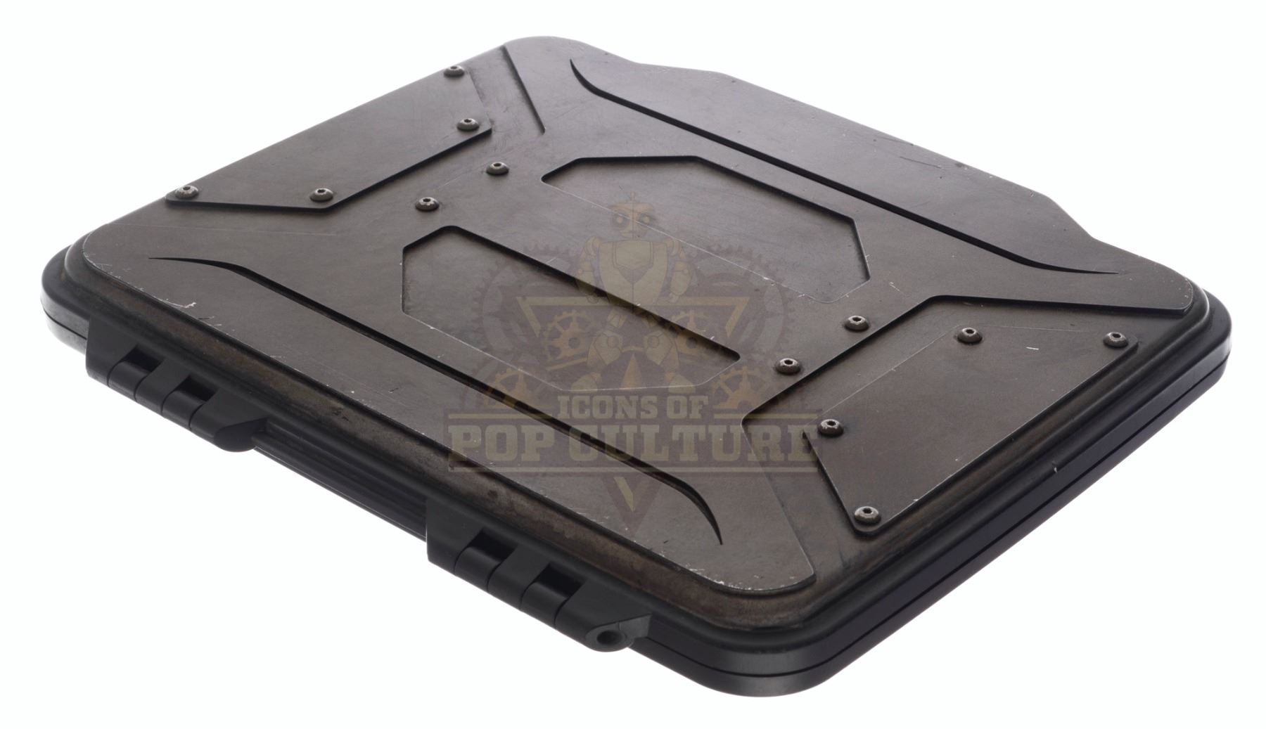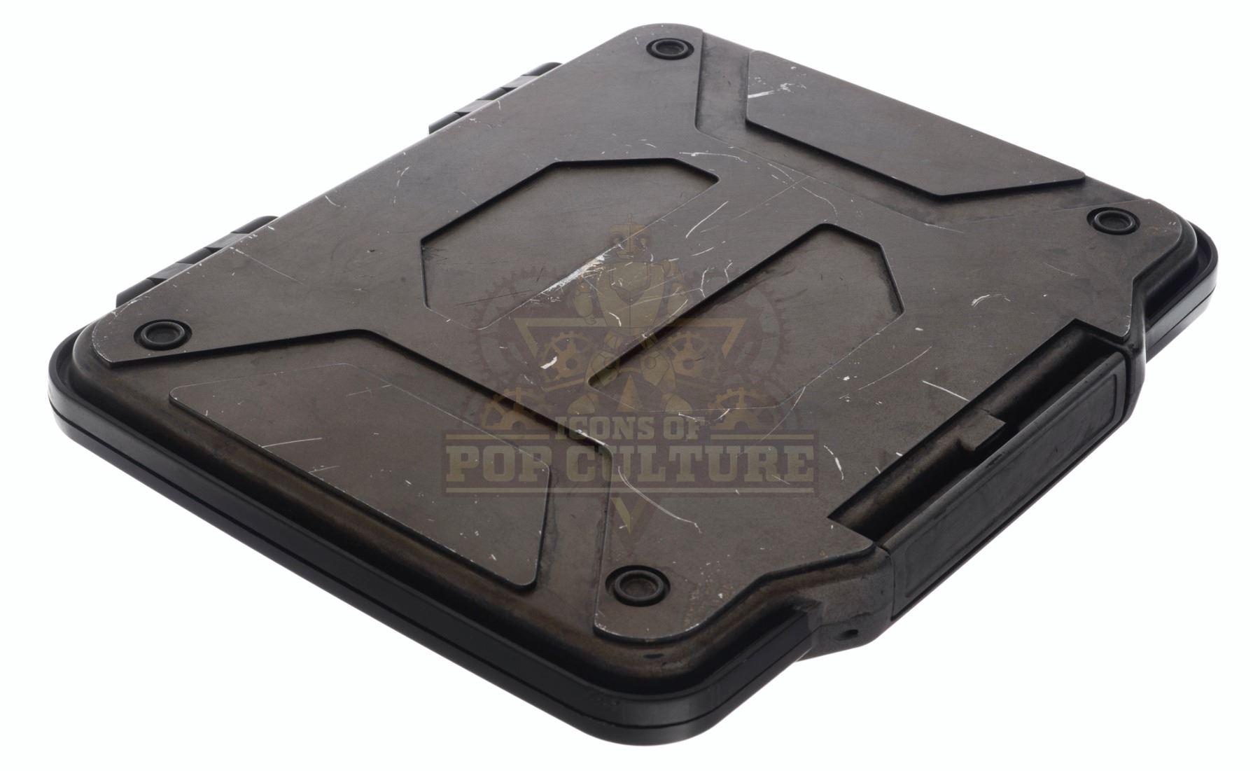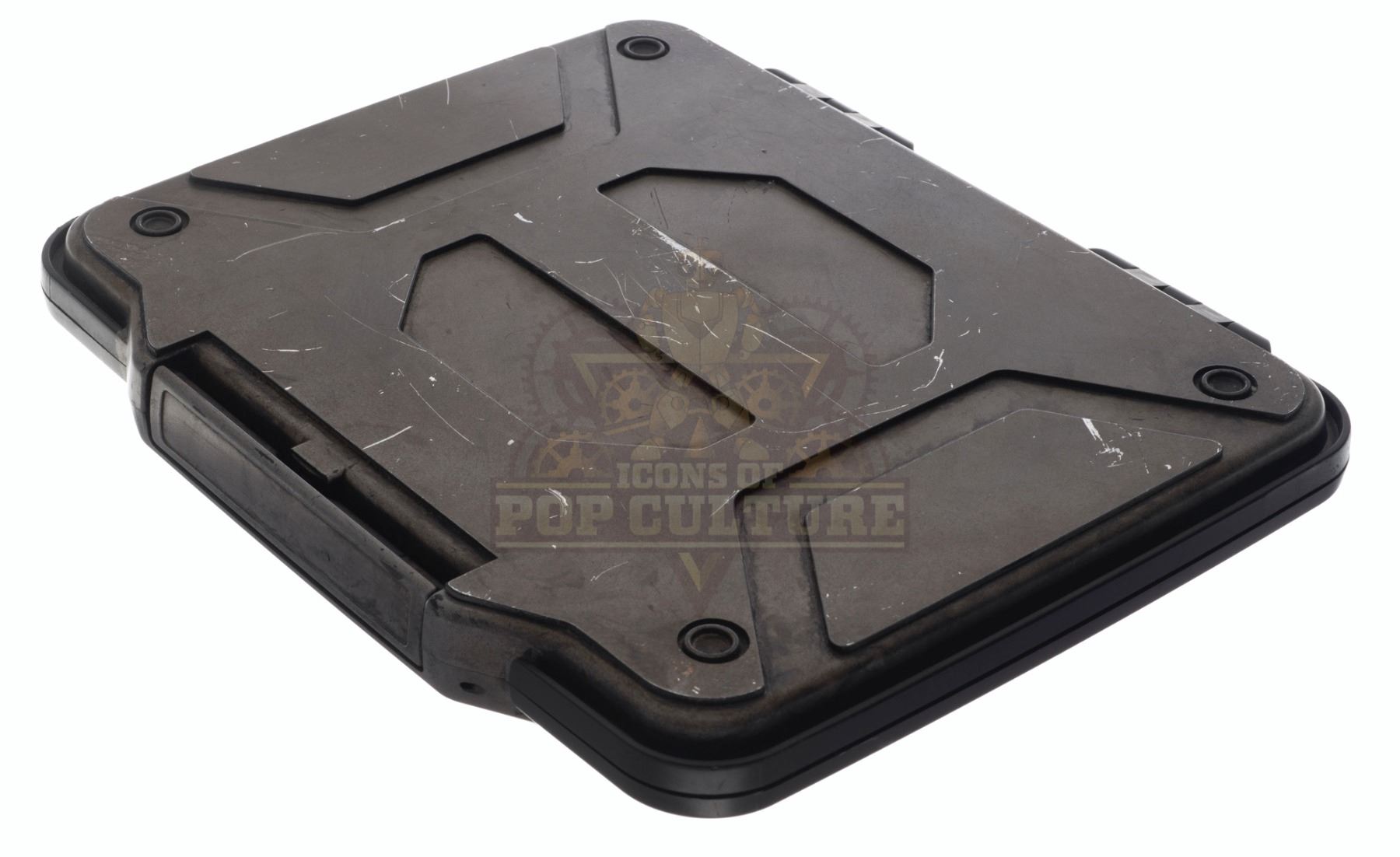 This prop Time Travel Device, or “TTD” was acquired and customized by the production for use by Eliza Coupe as “Tiger”, Derek Wilson as “Wolf” and Josh Hutcherson as “Josh Futturman” in various episodes of the series. The “TTD” is the integral prop of the series that allows Tiger, Wolf and Josh to travel in time to stop the “Biotics” and save the world. The prop “TTD” is made of plastic and detailed to appear as a hard-protective case. Two hinges on the back allow the case to open and close. This is a light weight version used for carrying around and stunts. Measures 11” x 9” x 1.25”.