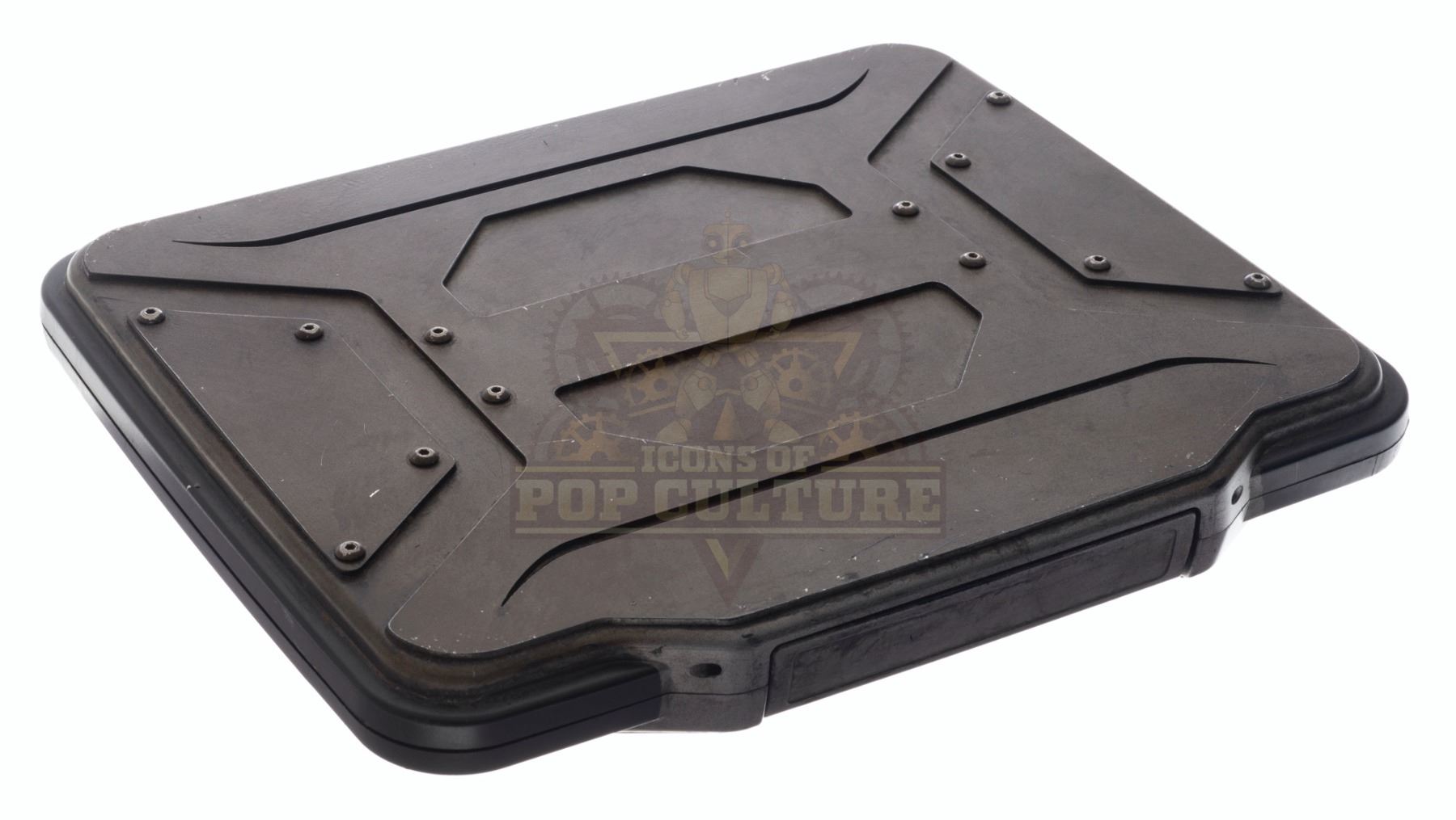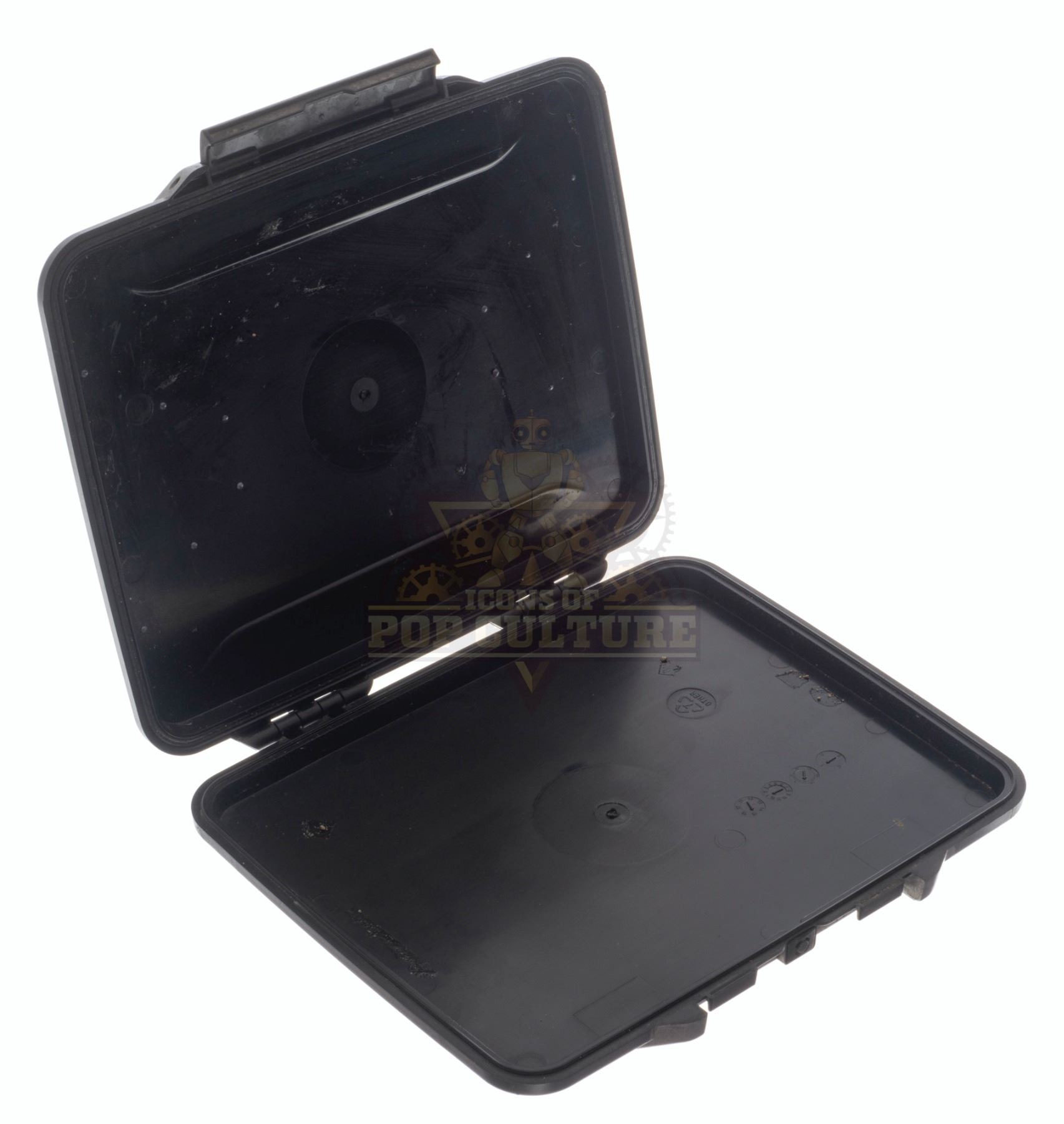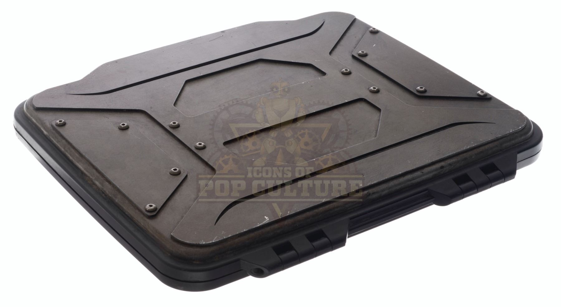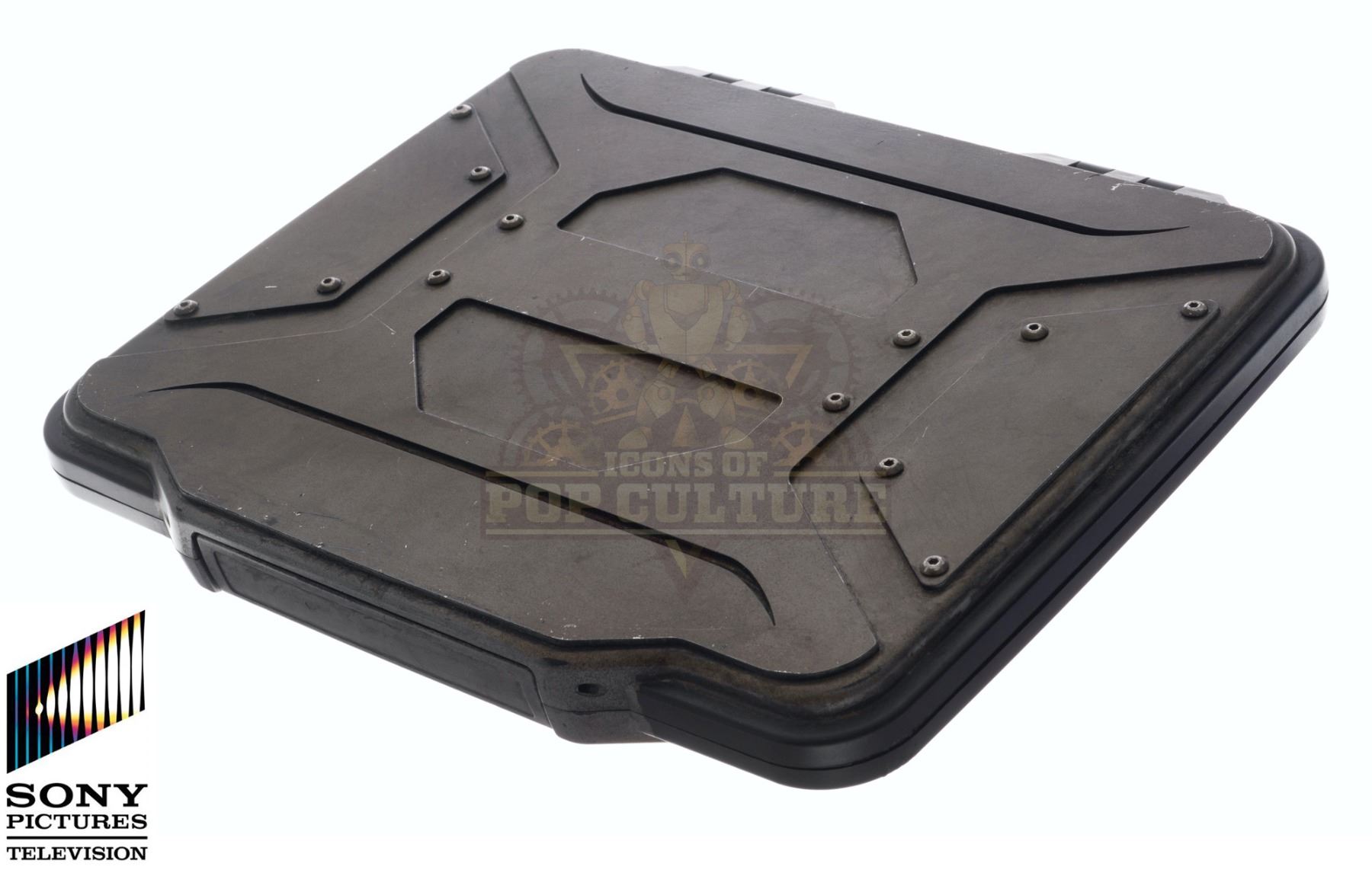 This prop Time Travel Device, or “TTD” was acquired and customized by the production for use by Eliza Coupe as “Tiger”, Derek Wilson as “Wolf” and Josh Hutcherson as “Josh Futturman” in various episodes of the series. The “TTD” is the integral prop of the series that allows Tiger, Wolf and Josh to travel in time to stop the “Biotics” and save the world. The prop “TTD” is made of plastic and detailed to appear as a hard-protective case. Two hinges on the back allow the case to open and close. This is a light weight version used for carrying around and stunts. Measures 11” x 9” x 1.25”.