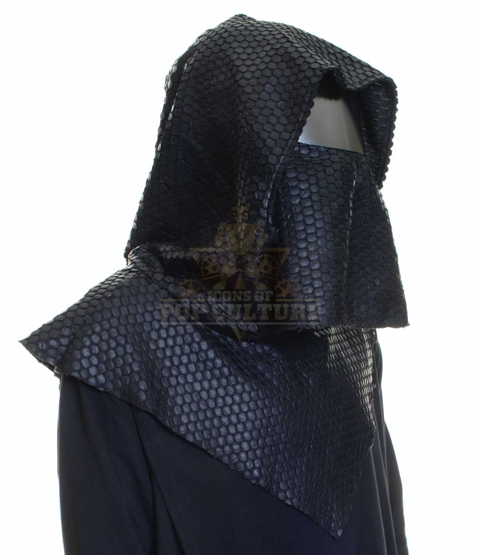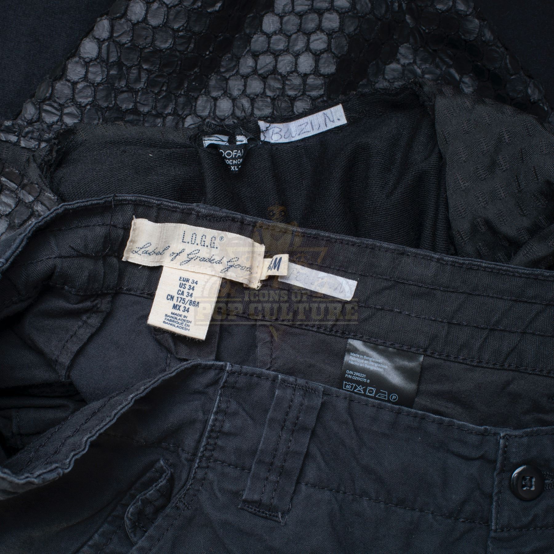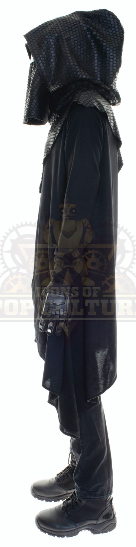 This outfit was acquired by the production for use by an uncredited actor as a “Time Jail Guard” in the season two episode titled “Ultra-Max”. The outfit consists of a black hooded cloak, a pair of black pants, Plastic visor, a pair of gloves and a pair of black boots.